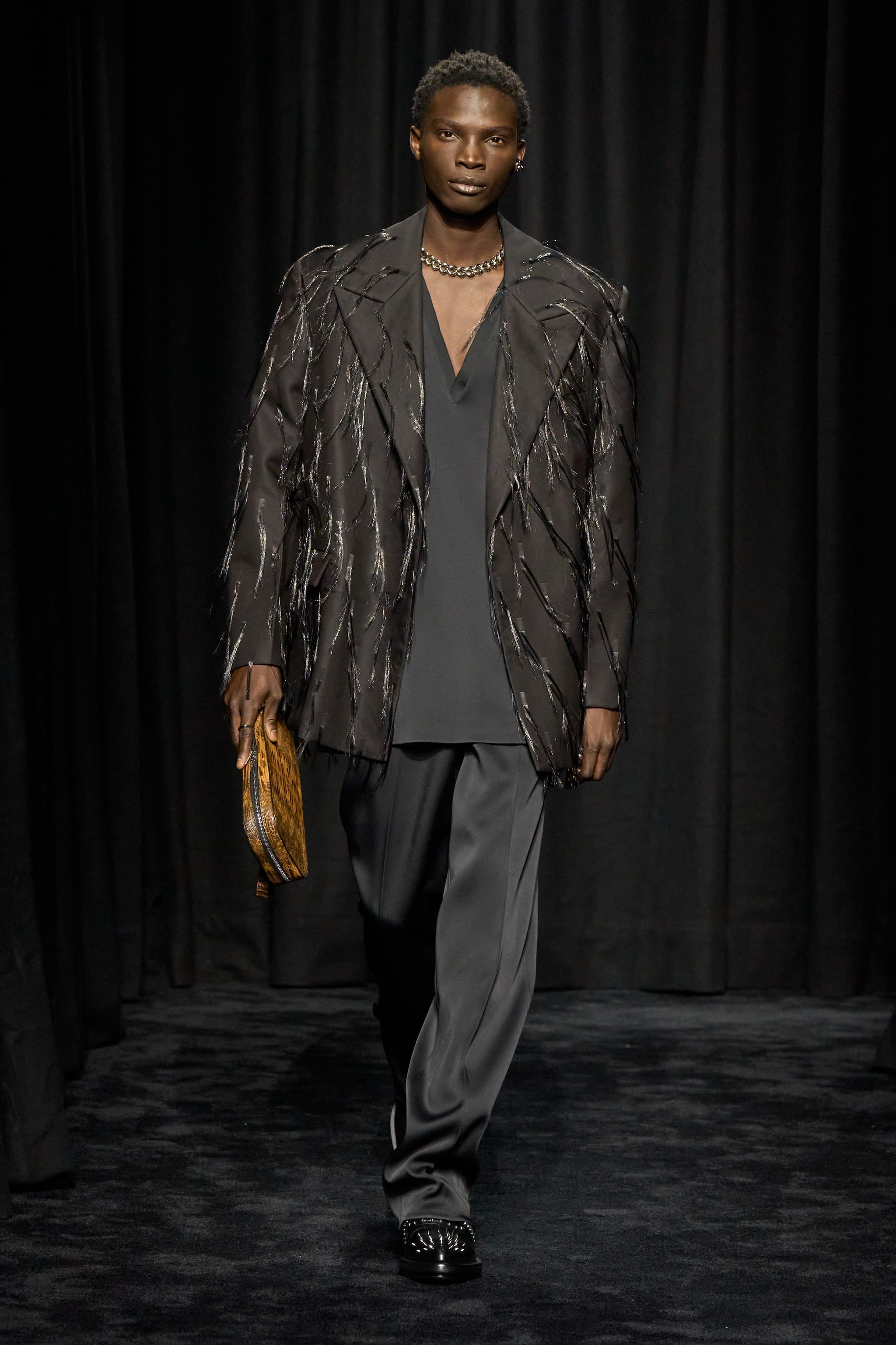 Lunghe frange, cascate di paillettes, fiocchi, dettagli in pelliccia e look in pelle colorato sfilano alla Milano Fashion Week sulla passerella Autunno/Inverno 2025-2026 di Jil Sander