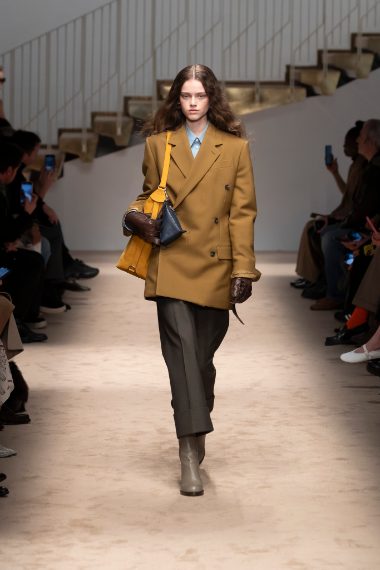 Blazer e cappotti doppiopetto, trench in pelle, giacche oversize e look in full melange sfilano alla Milano Fashion Week sulla passerella Autunno/Inverno 2025-2026 di Tod's