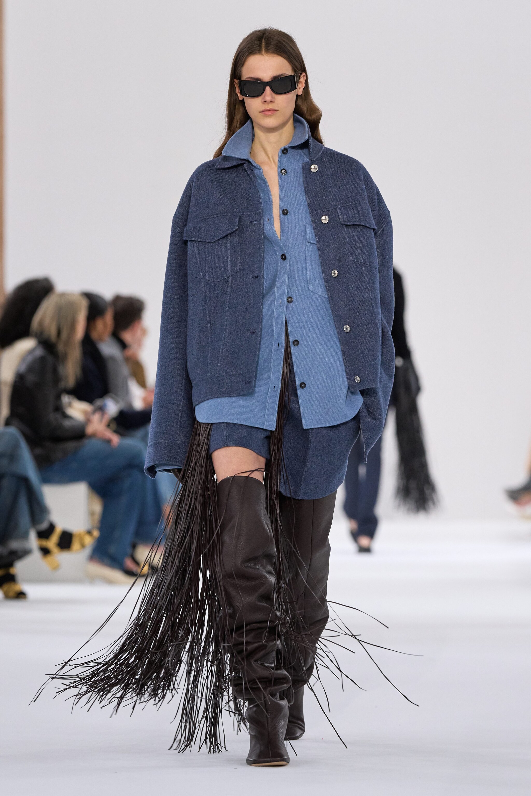 Lunghe frange su abiti e borse, morbidi midi dress drappeggiati in lana o seta in ocra o rosso fuoco e voluminose pellicce sfilano alla Milano Fashion Week sulla passerella Autunno/Inverno 2025-2026 di Tod's