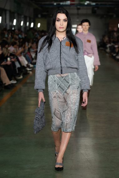 Completi, tubini e cardigan in lana a rombi si alternano a leggerissimi capi lingerie sulla passerella Autunno/Inverno 2025-2026 di Marco Rambaldi alla Milano Fashion Week