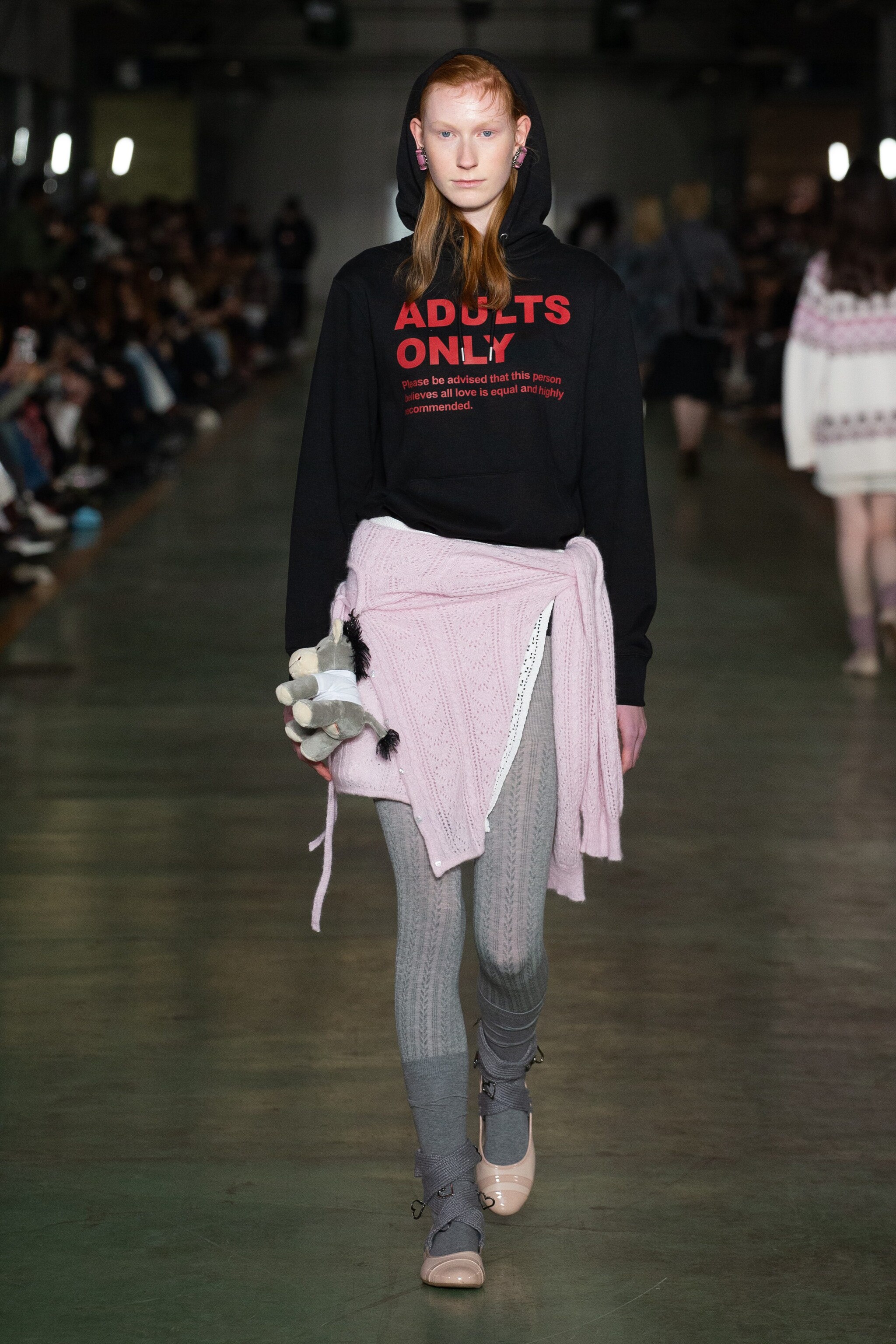 Completi, tubini e cardigan in lana a rombi si alternano a leggerissimi capi lingerie sulla passerella Autunno/Inverno 2025-2026 di Marco Rambaldi alla Milano Fashion Week