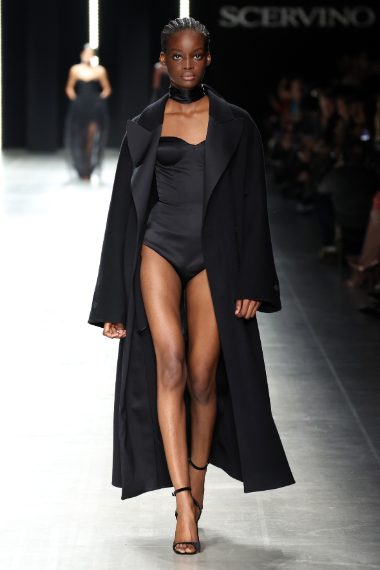 Corsetti e top ispirati al mondo della lingerie, grossi cardigan in lana, abiti impalpabili in seta trasparente o in pizzo floreale sfilano alla Milano Fashion Week sulla passerella Autunno/Inverno 2025-2026 di Ermanno Scervino