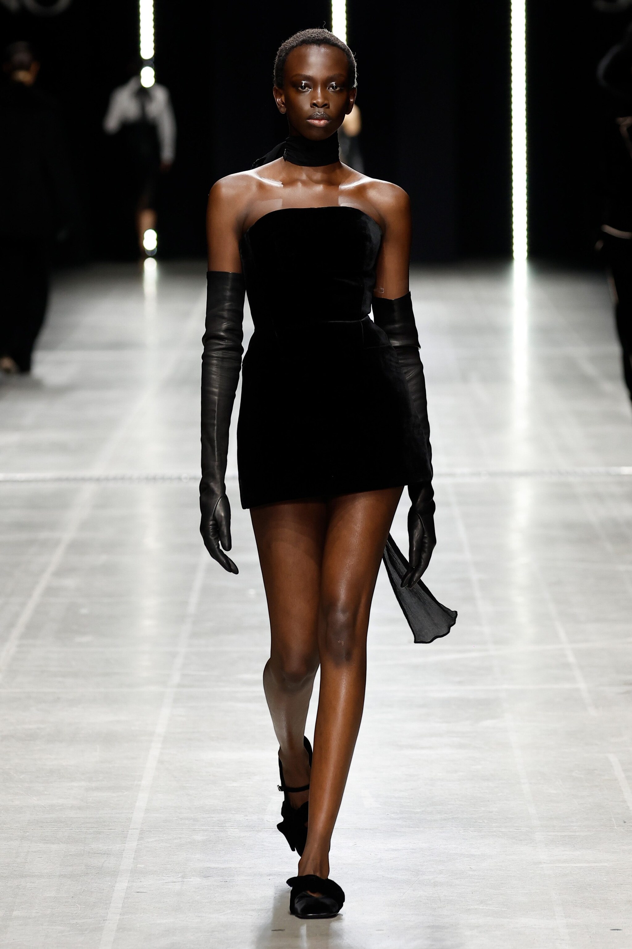 Corsetti e top ispirati al mondo della lingerie, grossi cardigan in lana, abiti impalpabili in seta trasparente o in pizzo floreale sfilano alla Milano Fashion Week sulla passerella Autunno/Inverno 2025-2026 di Ermanno Scervino