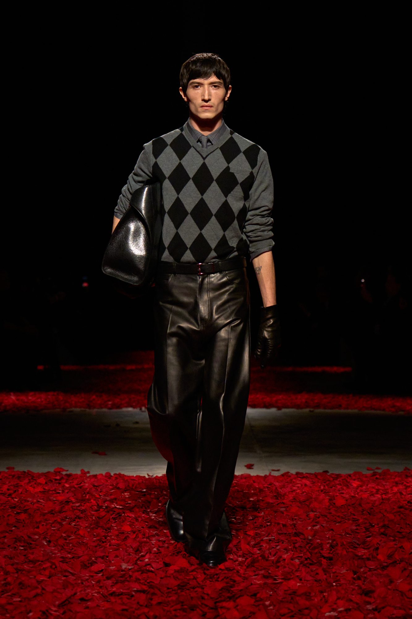 Look monocolore si alternano a tubini in maglia maxi pellicce e abiti ricoperti di fiori pendenti e tridimensionali sulla passerella Autunno/Inverno 2025-2026 di Ferragamo