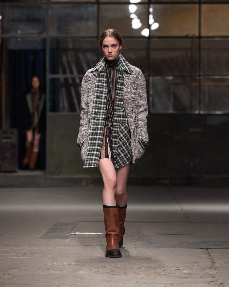 Colori scuri e neturi, fantasie a quadri mescolate con quelle a righe e layering di capi a contrasto sfilano Milano Fashion Week sulla Autunno/Inverno 2025-2026 di Missoni