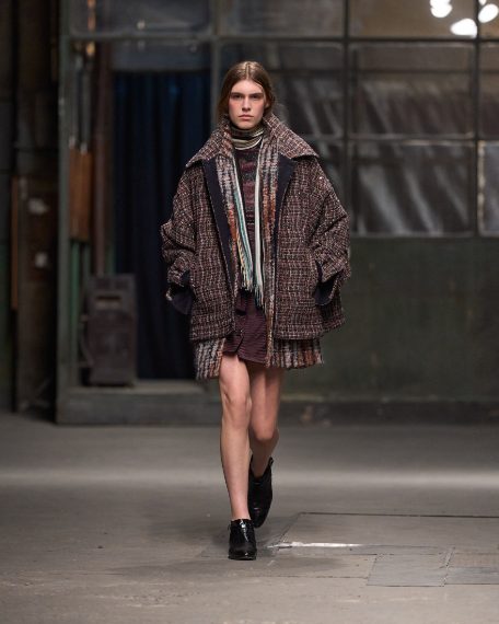 Colori scuri e neturi, fantasie a quadri mescolate con quelle a righe e layering di capi a contrasto sfilano Milano Fashion Week sulla Autunno/Inverno 2025-2026 di Missoni