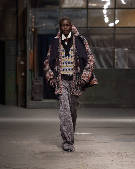 Colori scuri e neturi, fantasie a quadri mescolate con quelle a righe e layering di capi a contrasto sfilano Milano Fashion Week sulla Autunno/Inverno 2025-2026 di Missoni