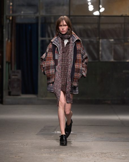 Colori scuri e neturi, fantasie a quadri mescolate con quelle a righe e layering di capi a contrasto sfilano Milano Fashion Week sulla Autunno/Inverno 2025-2026 di Missoni