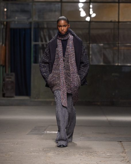 Colori scuri e neturi, fantasie a quadri mescolate con quelle a righe e layering di capi a contrasto sfilano Milano Fashion Week sulla Autunno/Inverno 2025-2026 di Missoni