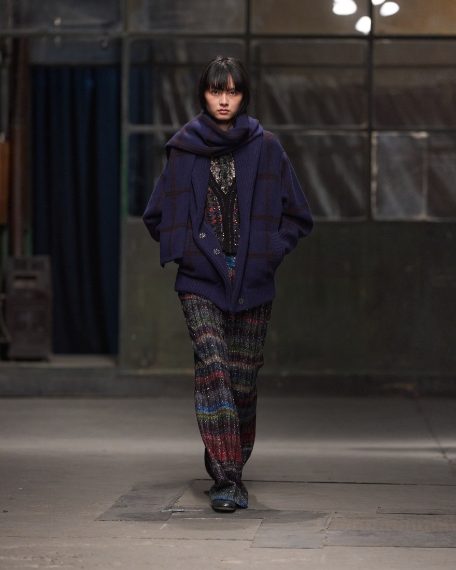 Colori scuri e neturi, fantasie a quadri mescolate con quelle a righe e layering di capi a contrasto sfilano Milano Fashion Week sulla Autunno/Inverno 2025-2026 di Missoni