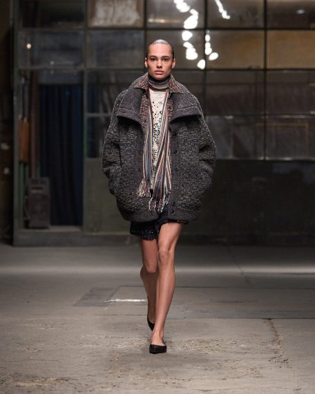 Colori scuri e neturi, fantasie a quadri mescolate con quelle a righe e layering di capi a contrasto sfilano Milano Fashion Week sulla Autunno/Inverno 2025-2026 di Missoni