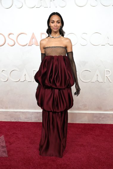 Zoe Saldana in Saint Laurent con gioielli Cartier