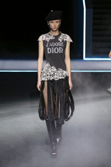 Ruche, pizzo color crema, abiti clessidra e ricami floreali sfilano alla Paris Fashion Week sulla passerella Autunno/Inverno 2025-2026 di Dior