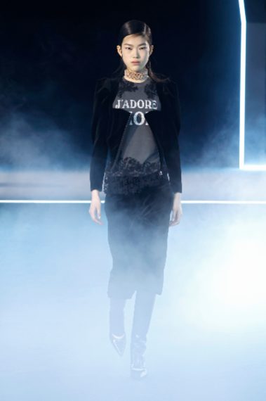 Ruche, pizzo color crema, abiti clessidra e ricami floreali sfilano alla Paris Fashion Week sulla passerella Autunno/Inverno 2025-2026 di Dior