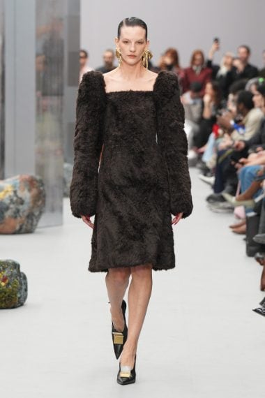 Body in lana, maxi pellicce, blazer dalla spalline balloon, fiocchi e denim stropicciato sfilano alla Paris Fashion Week sulla passerella Autunno/Inverno 2025-2026 di Acne Studios