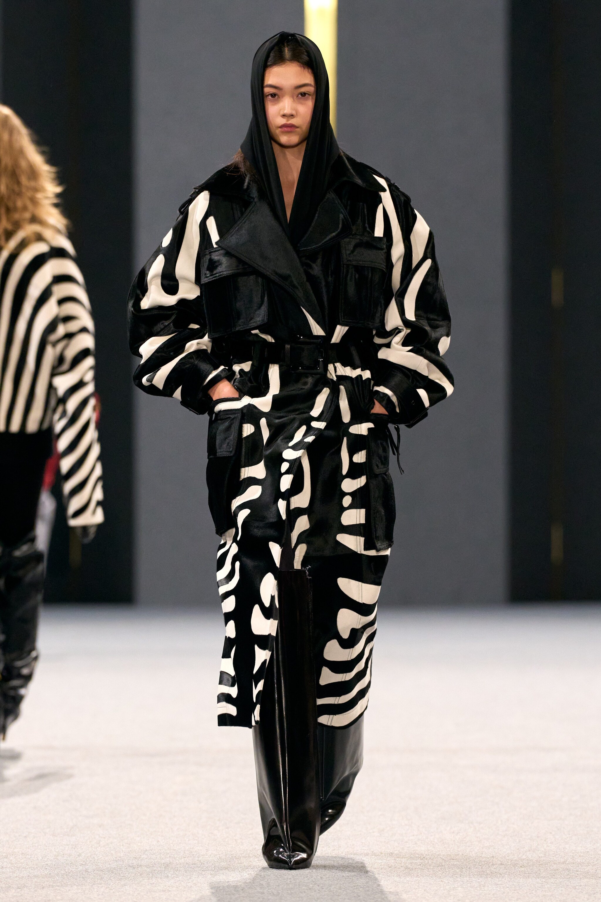 Cappotti dai rever giganti, stivali in pelle drappeggiat, abiti con baschine e maglioni dalle tonalità luminose sfilano alla Paris Fashion Week sulla passerella Autunno/Inverno 2025-2026 di Balmain.