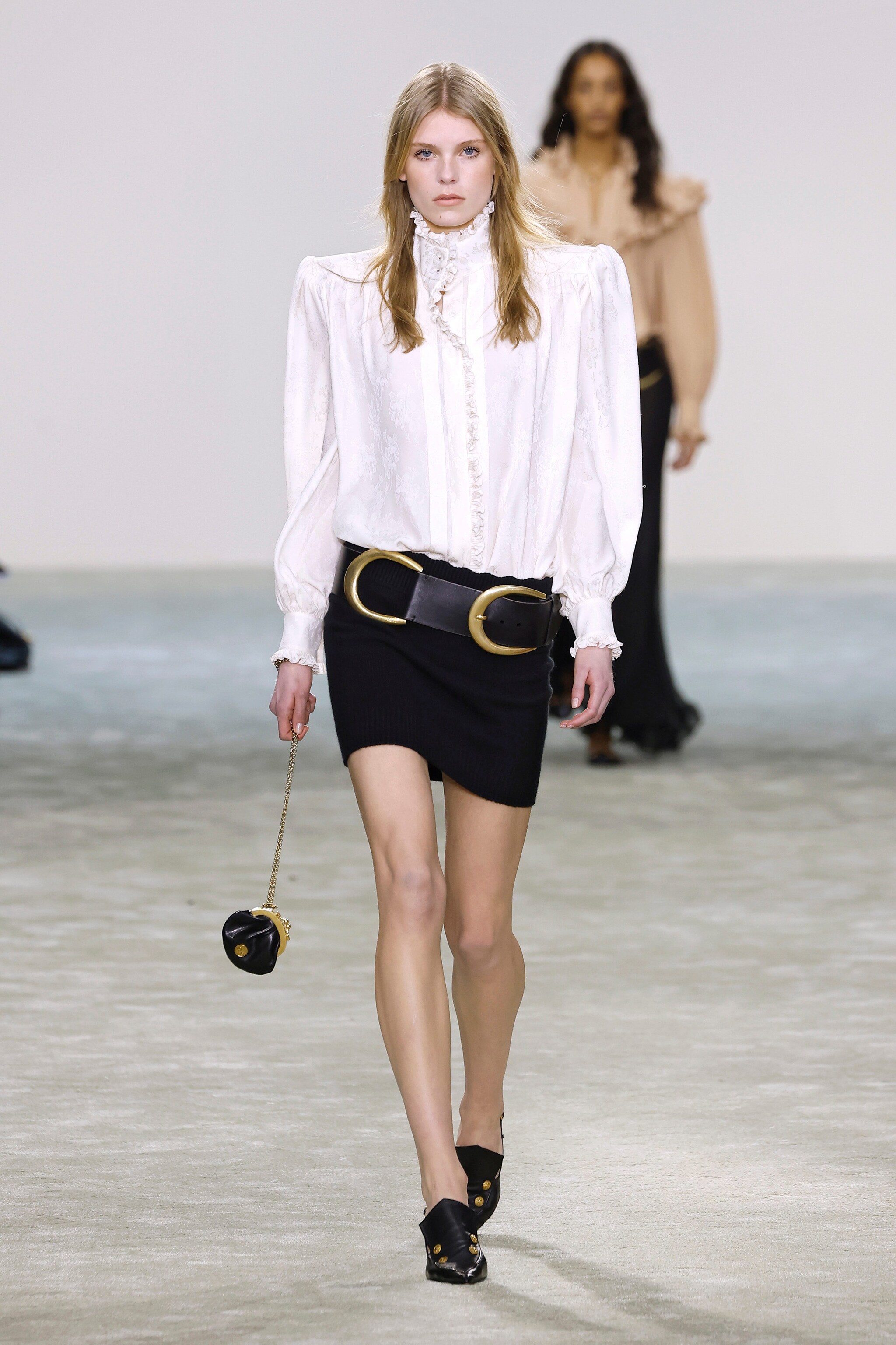 Abiti in seta e modelli in pizzo, dettagli in pelliccia, ruche e volant sfilano alla Paris Fashion Week sulla passerella Autunno/Inverno 2025-2026 di Chloé