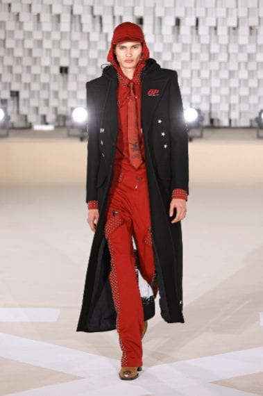 Lo stile militare si mescola con quello college alla Paris Fashion Week sulla passerella Autunno/Inverno 2025-2026 di Off-White, dove sfila una collezione fatta di contrasti di forme, colori e silhouette opposte
