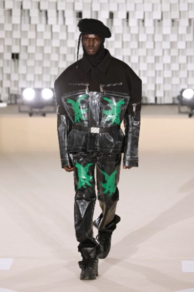 Lo stile militare si mescola con quello college alla Paris Fashion Week sulla passerella Autunno/Inverno 2025-2026 di Off-White, dove sfila una collezione fatta di contrasti di forme, colori e silhouette opposte