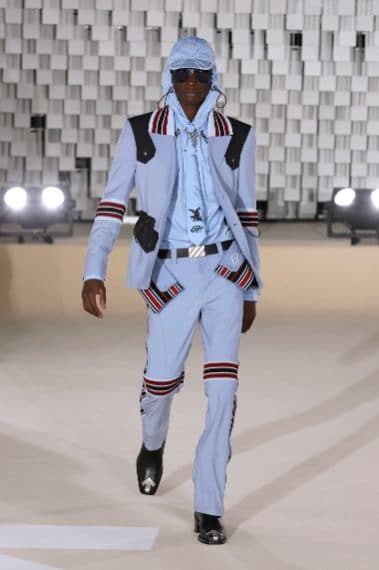 Lo stile militare si mescola con quello college alla Paris Fashion Week sulla passerella Autunno/Inverno 2025-2026 di Off-White, dove sfila una collezione fatta di contrasti di forme, colori e silhouette opposte