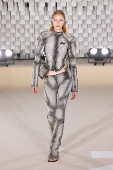 Lo stile militare si mescola con quello college alla Paris Fashion Week sulla passerella Autunno/Inverno 2025-2026 di Off-White, dove sfila una collezione fatta di contrasti di forme, colori e silhouette opposte
