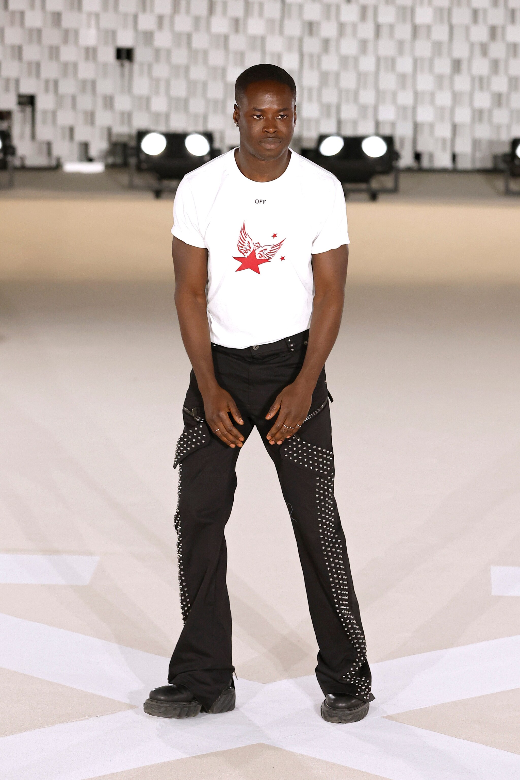 Lo stile militare si mescola con quello college alla Paris Fashion Week sulla passerella Autunno/Inverno 2025-2026 di Off-White, dove sfila una collezione fatta di contrasti di forme, colori e silhouette opposte
