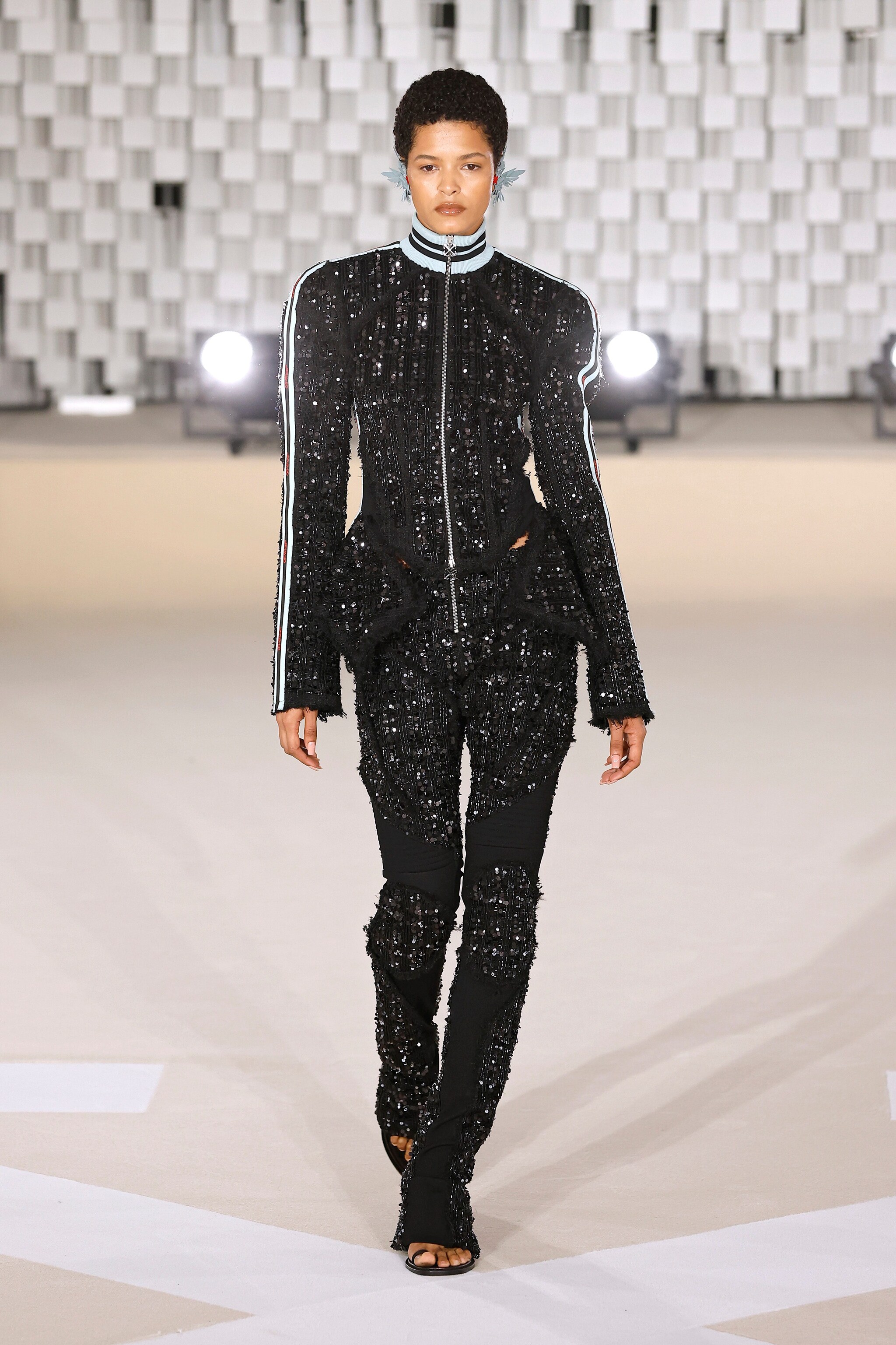 Lo stile militare si mescola con quello college alla Paris Fashion Week sulla passerella Autunno/Inverno 2025-2026 di Off-White, dove sfila una collezione fatta di contrasti di forme, colori e silhouette opposte
