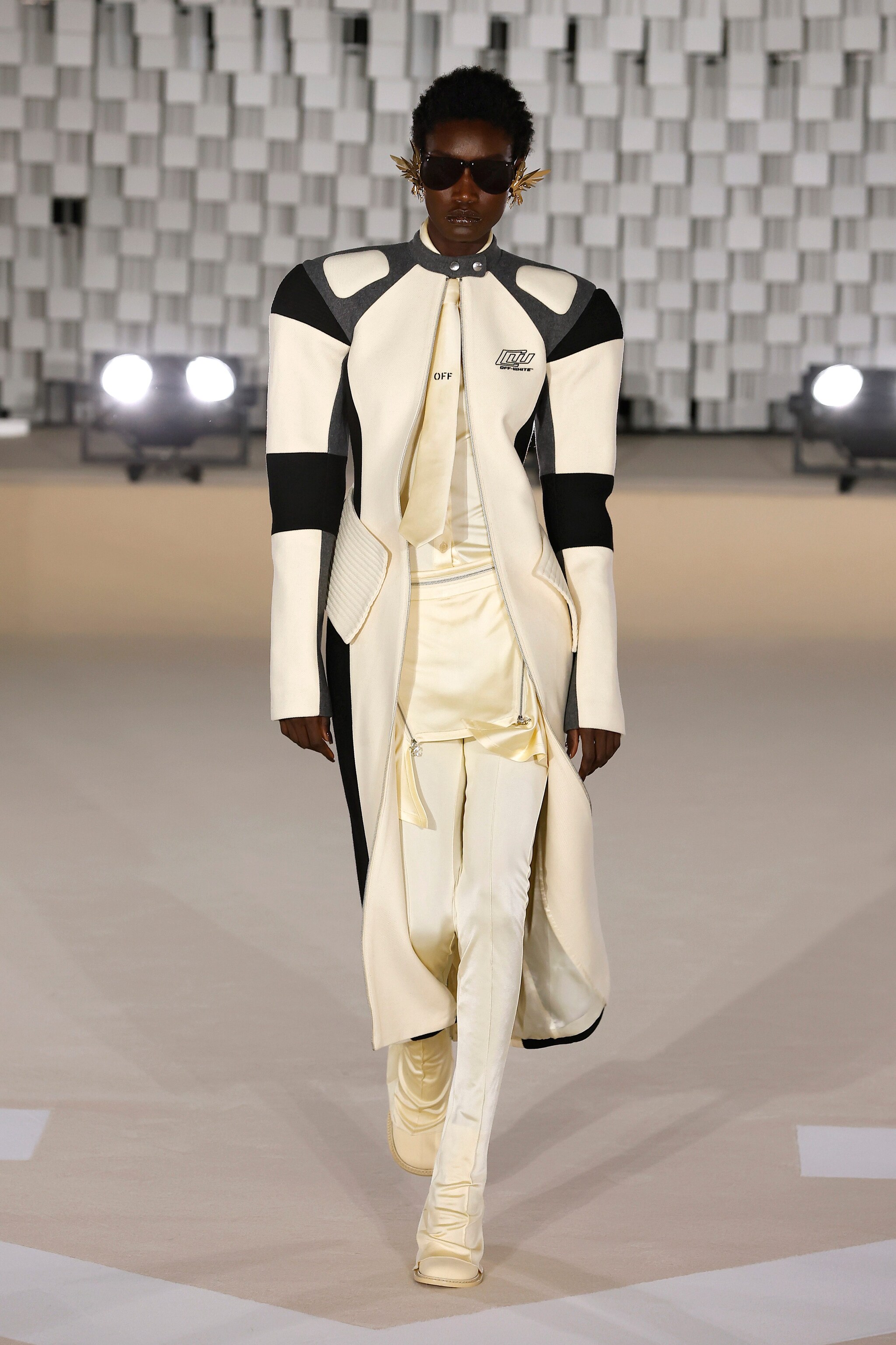 Lo stile militare si mescola con quello college alla Paris Fashion Week sulla passerella Autunno/Inverno 2025-2026 di Off-White, dove sfila una collezione fatta di contrasti di forme, colori e silhouette opposte
