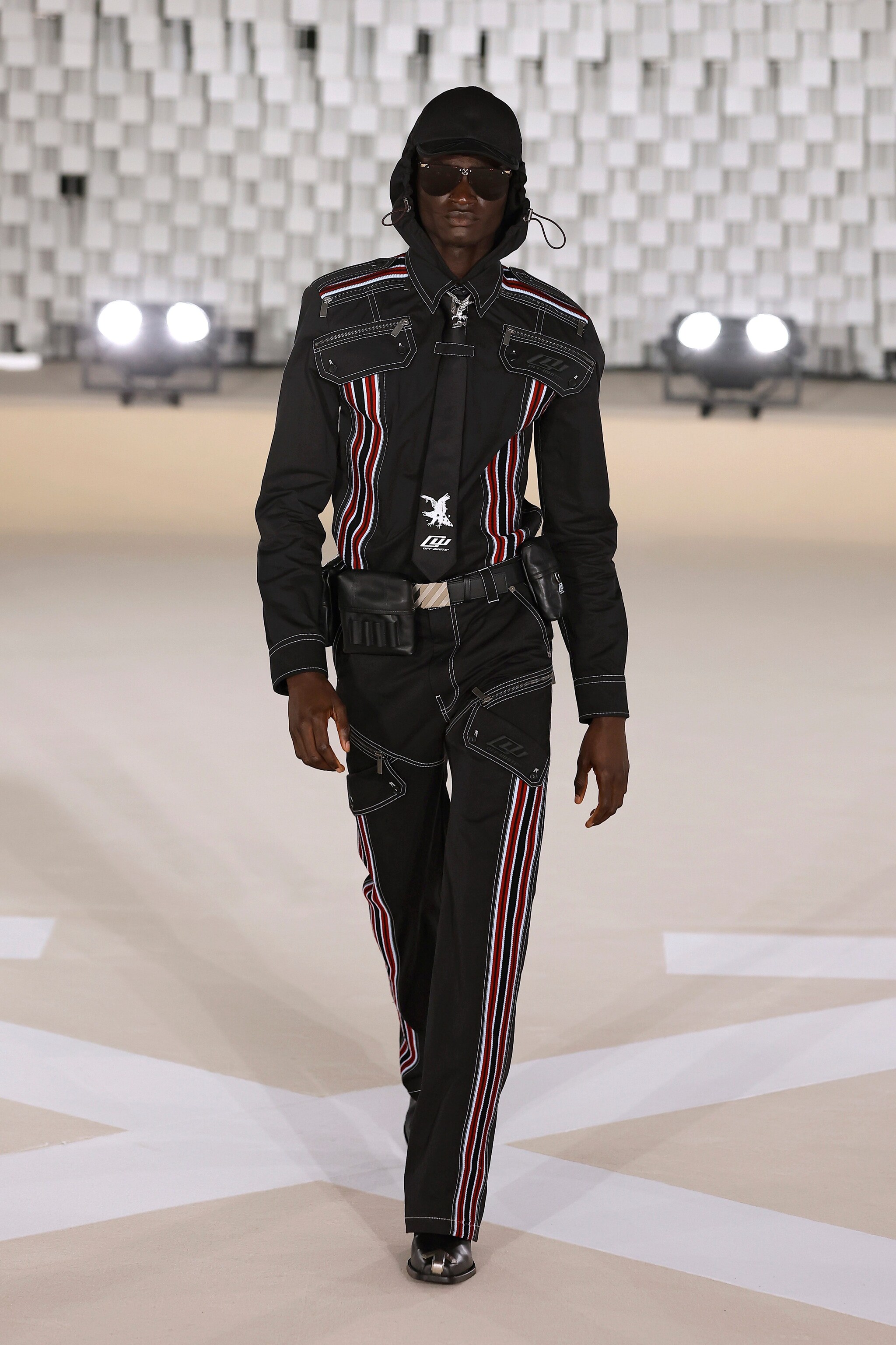 Lo stile militare si mescola con quello college alla Paris Fashion Week sulla passerella Autunno/Inverno 2025-2026 di Off-White, dove sfila una collezione fatta di contrasti di forme, colori e silhouette opposte