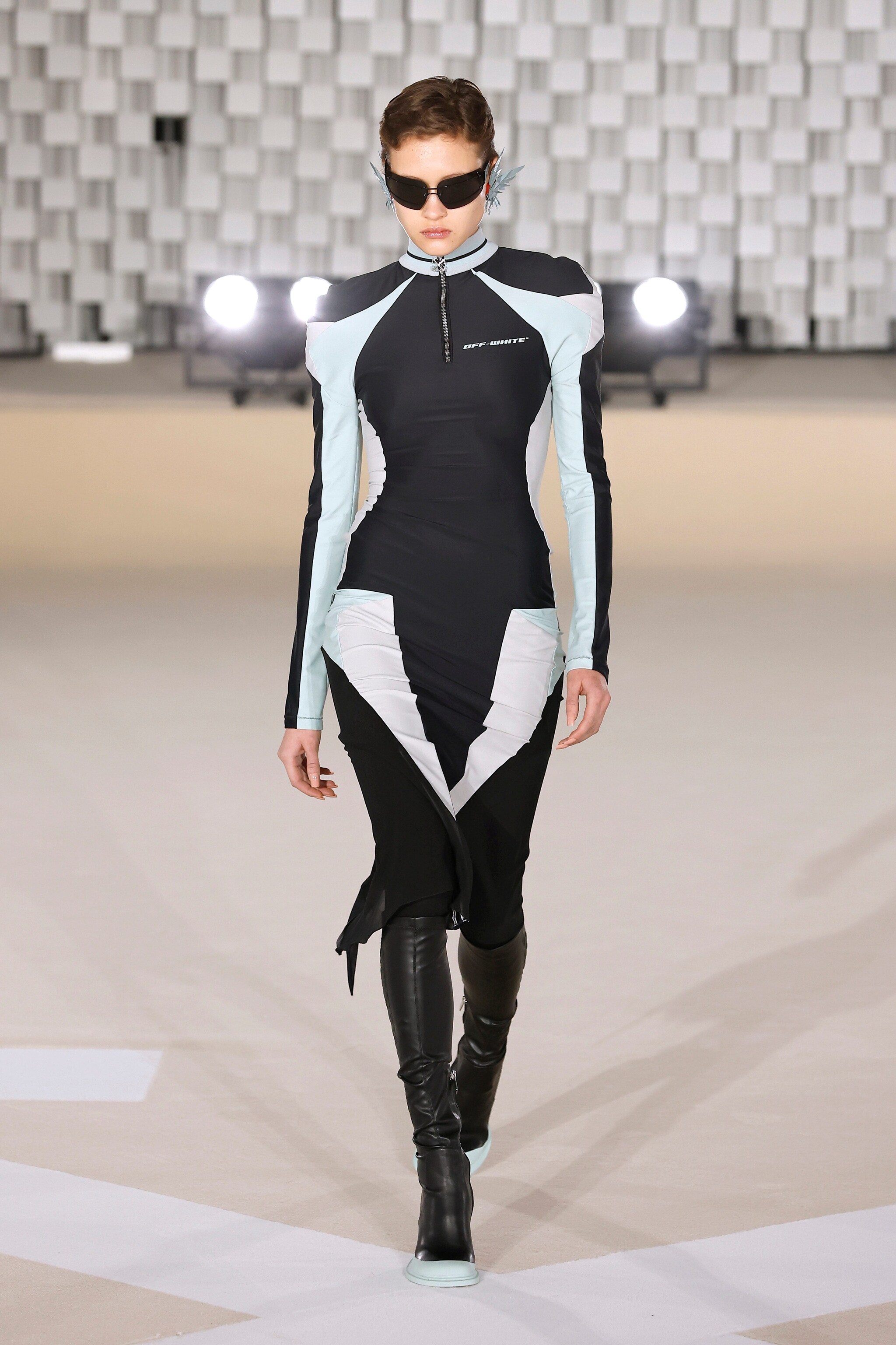 Lo stile militare si mescola con quello college alla Paris Fashion Week sulla passerella Autunno/Inverno 2025-2026 di Off-White, dove sfila una collezione fatta di contrasti di forme, colori e silhouette opposte