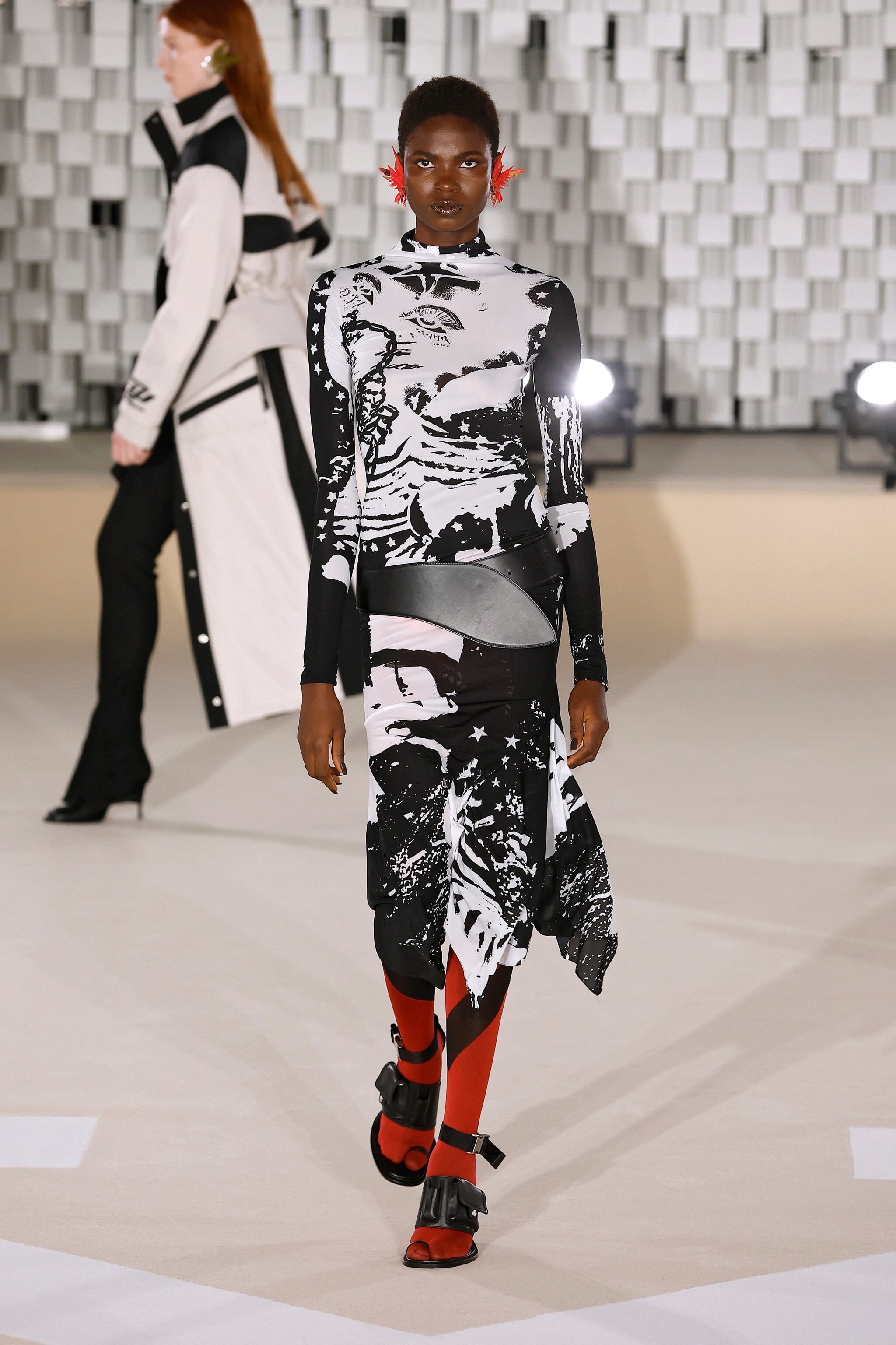 Lo stile militare si mescola con quello college alla Paris Fashion Week sulla passerella Autunno/Inverno 2025-2026 di Off-White, dove sfila una collezione fatta di contrasti di forme, colori e silhouette opposte