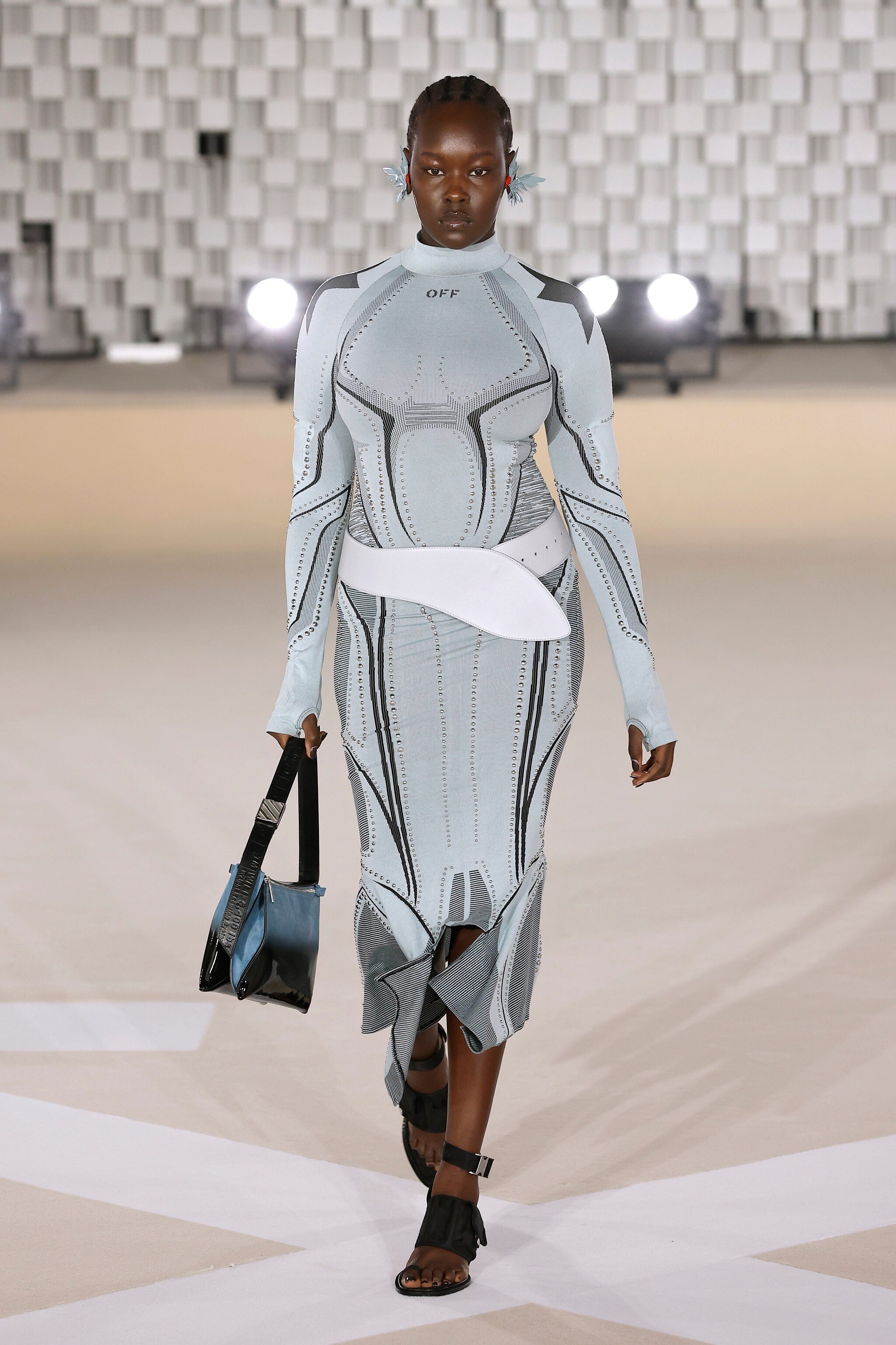 Lo stile militare si mescola con quello college alla Paris Fashion Week sulla passerella Autunno/Inverno 2025-2026 di Off-White, dove sfila una collezione fatta di contrasti di forme, colori e silhouette opposte