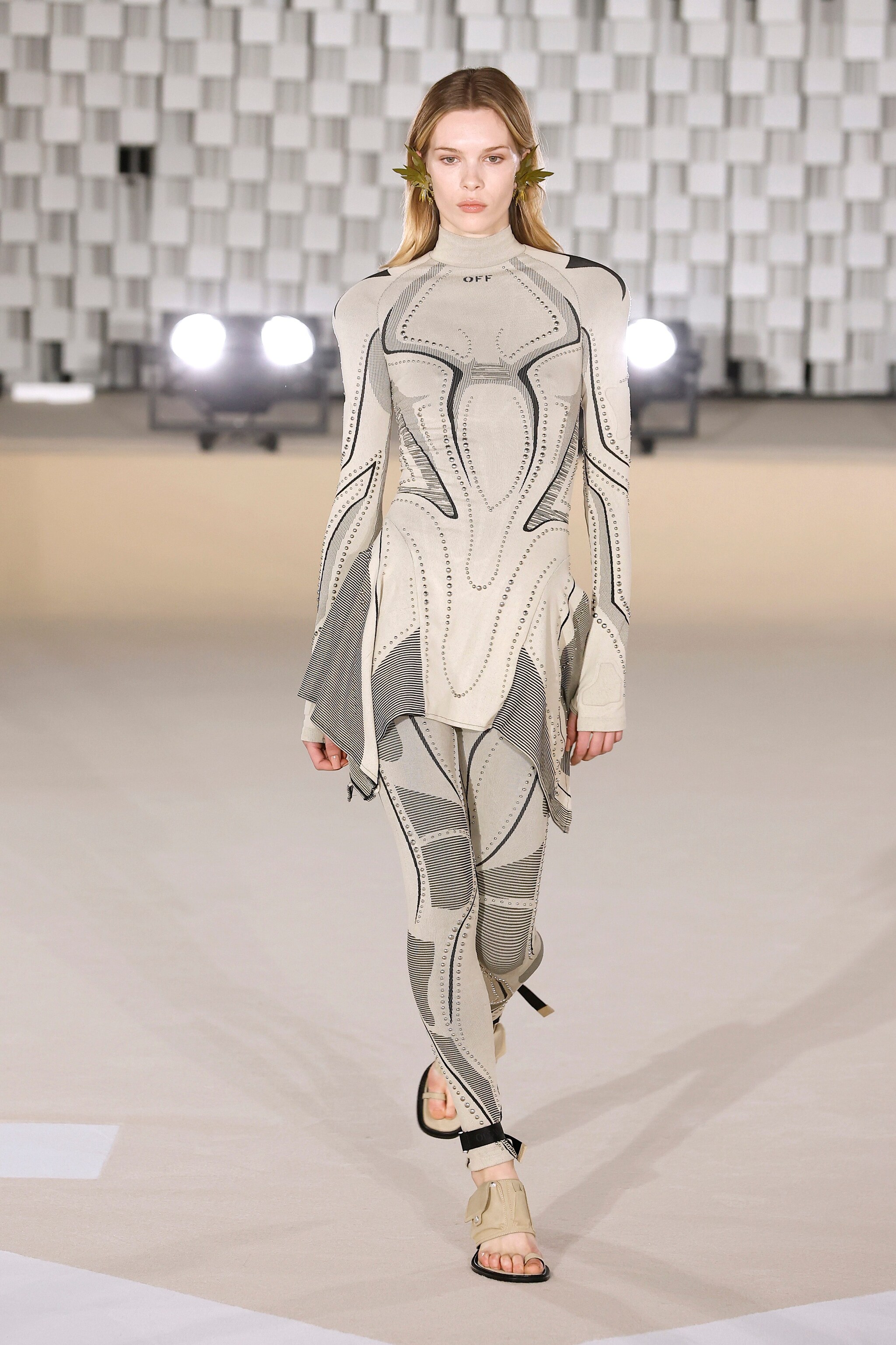 Lo stile militare si mescola con quello college alla Paris Fashion Week sulla passerella Autunno/Inverno 2025-2026 di Off-White, dove sfila una collezione fatta di contrasti di forme, colori e silhouette opposte