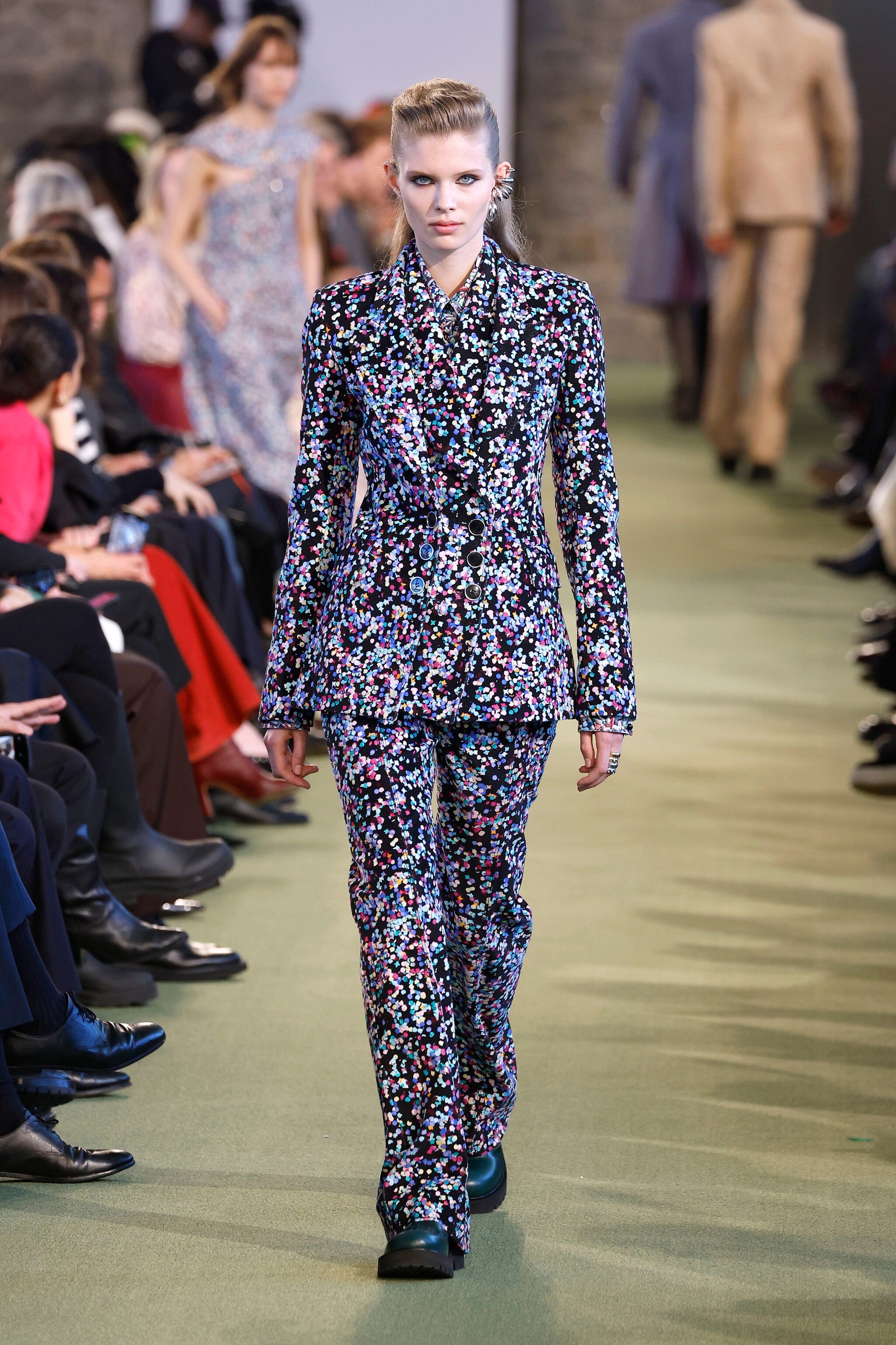 Olri in pelliccia, tagliati o frange e ancora abiti metallici con paillettes in oro e argento sfilano alla Paris Fashion Week sulla passerella Autunno/Inverno 2025-2026 di Rabanne
