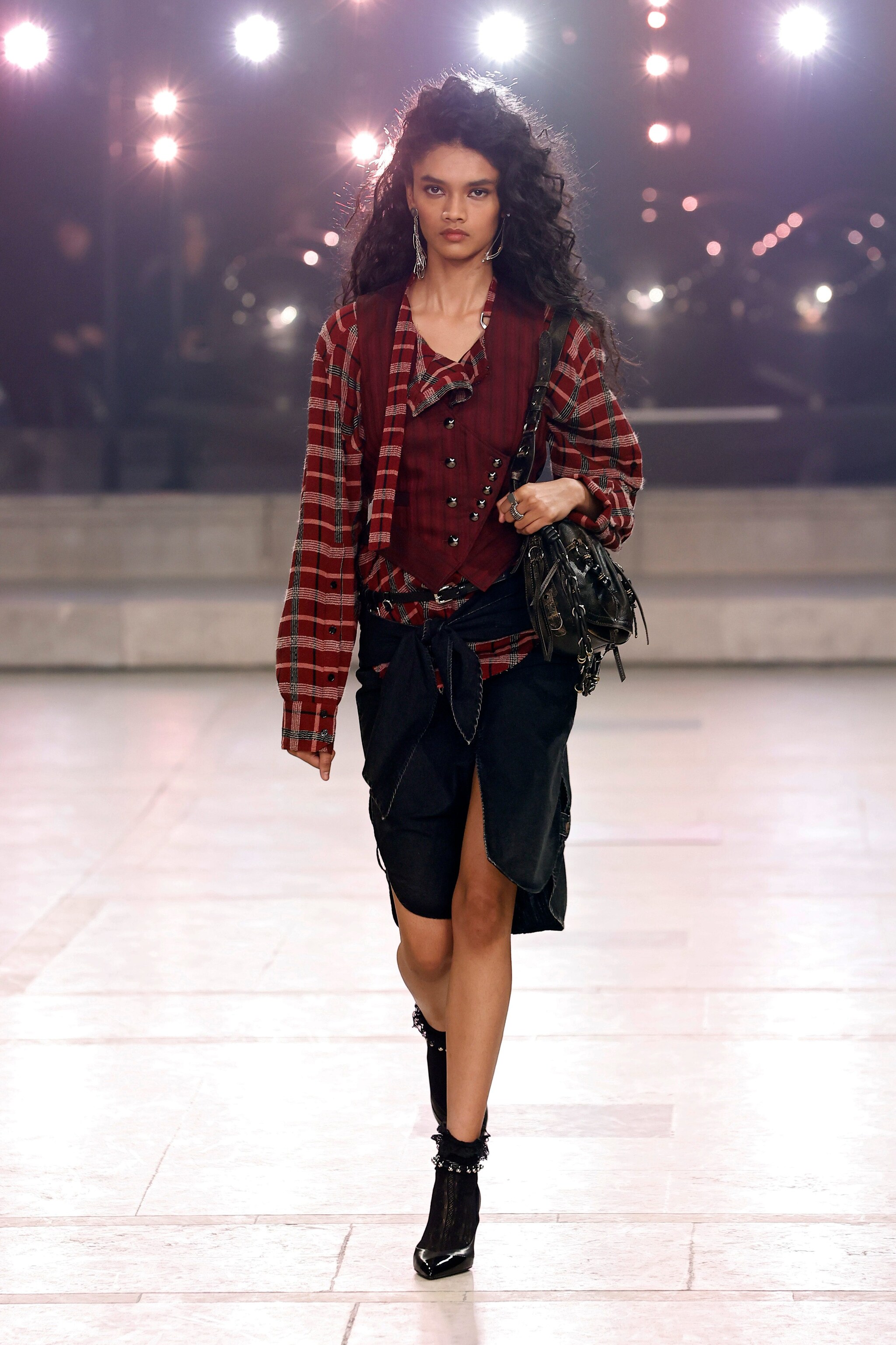 Fantasie gessate, look in pelle, pantaloni skinny e blazer dalle spalle oversize sfilano alla Paris Fashion Week sulla passerella Autunno/Inverno 2025-2026 di Isabel Marant