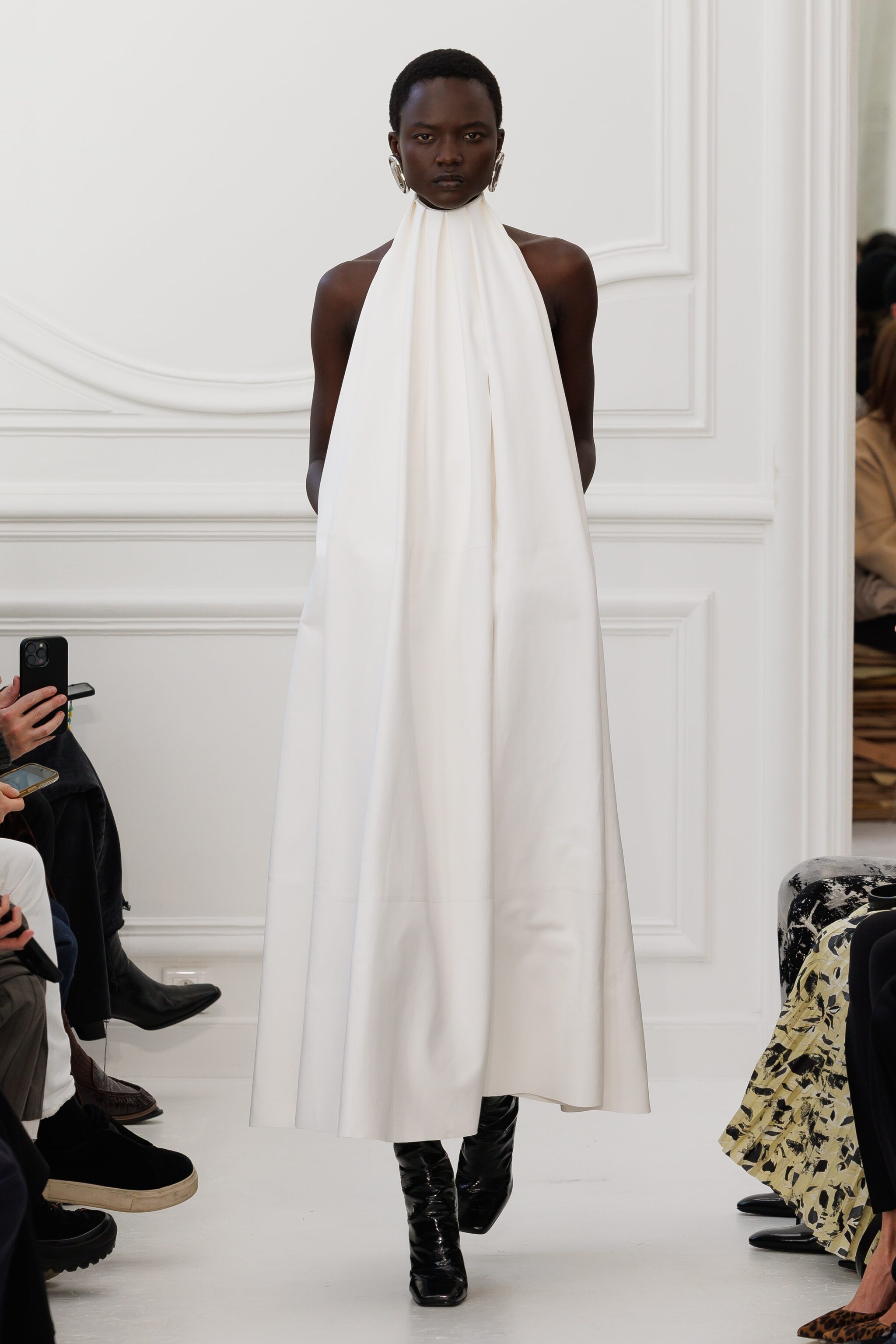 Giacche e abiti dalla linea a clessidra, tubini a rete aderenti, power suit e cappotti in fantasia spigata e ancora mini dress con gonne in tulle sfilano alla Paris Fashion Week sulla passerella Autunno/Inverno 2025-2026 di Givenchy