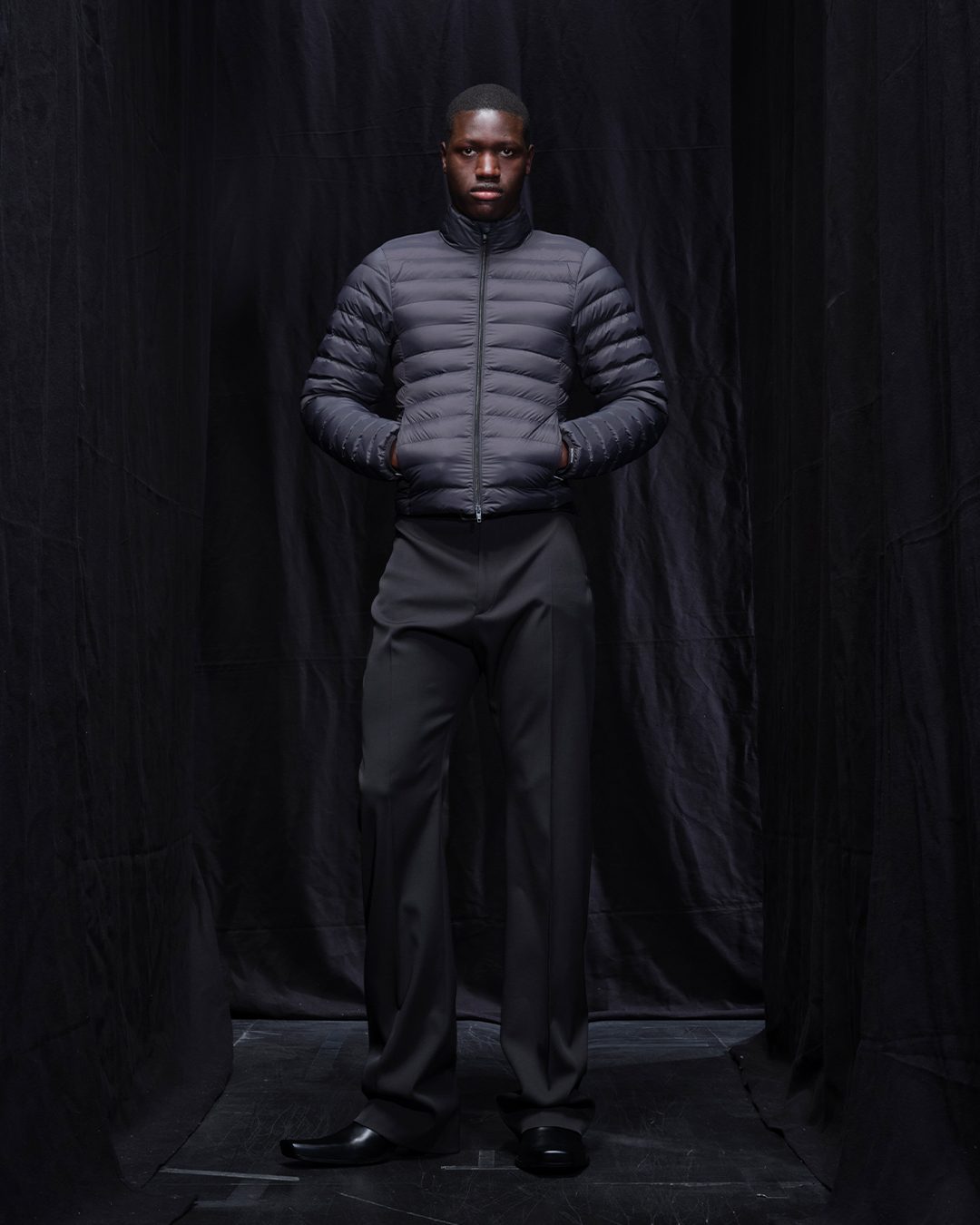 Lo sportswear incontra la couture e l'abbigliamento formale sulla passerella Autunno/Inverno 2025-2026 di Balenciaga, dove sfilano suits e completi "da ufficio" alternati a tute in acetato e lunghi abiti che sembrano un costume olimpionico con maxi strascico.