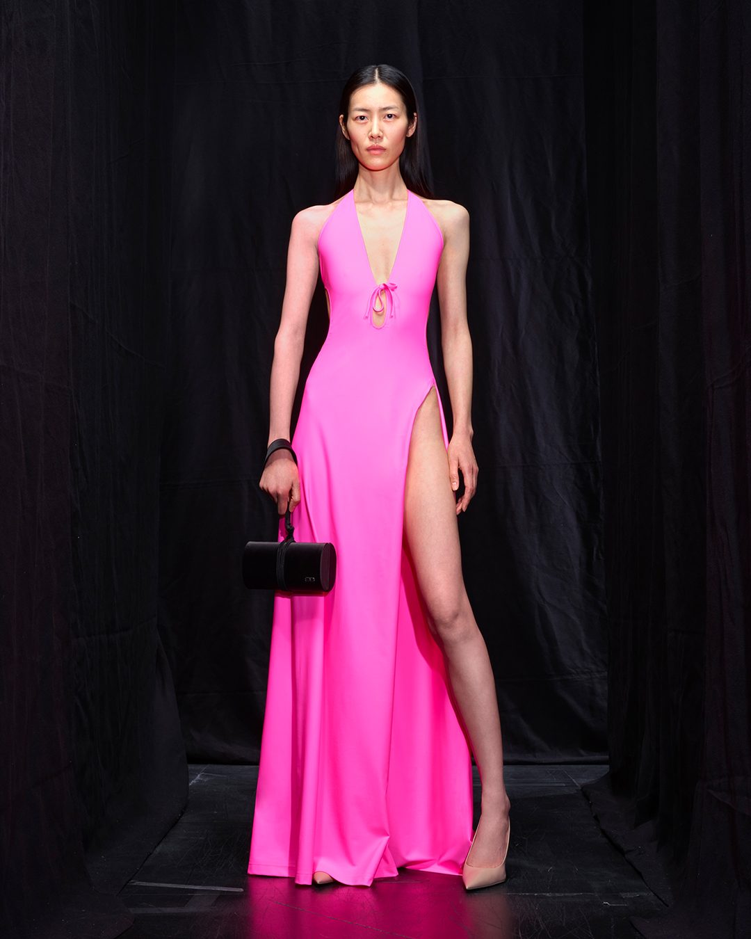 Lo sportswear incontra la couture e l'abbigliamento formale sulla passerella Autunno/Inverno 2025-2026 di Balenciaga, dove sfilano suits e completi "da ufficio" alternati a tute in acetato e lunghi abiti che sembrano un costume olimpionico con maxi strascico.