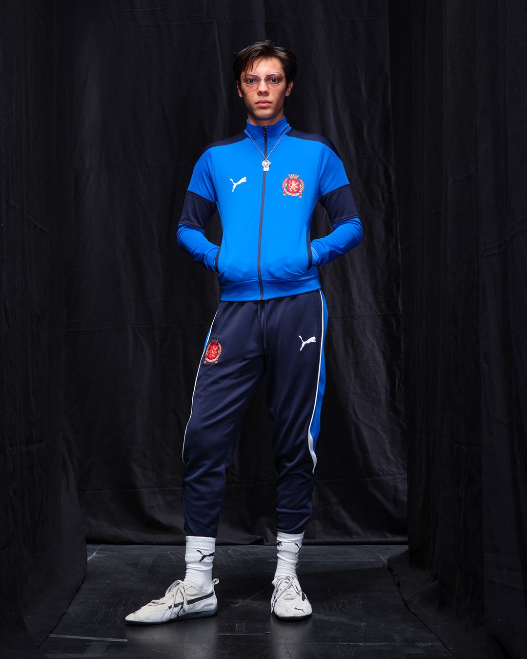 Lo sportswear incontra la couture e l'abbigliamento formale sulla passerella Autunno/Inverno 2025-2026 di Balenciaga, dove sfilano suits e completi "da ufficio" alternati a tute in acetato e lunghi abiti che sembrano un costume olimpionico con maxi strascico.