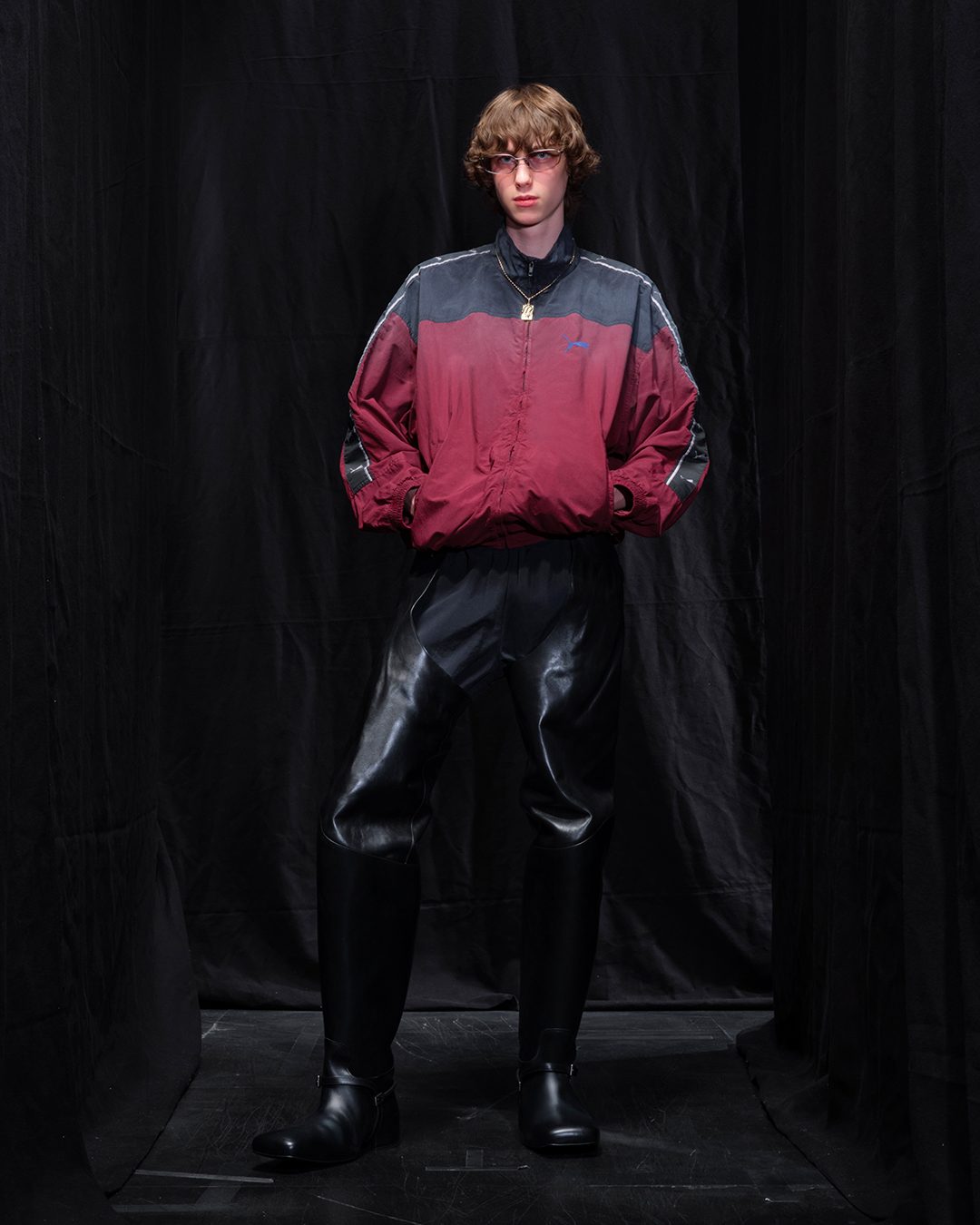 Lo sportswear incontra la couture e l'abbigliamento formale sulla passerella Autunno/Inverno 2025-2026 di Balenciaga, dove sfilano suits e completi "da ufficio" alternati a tute in acetato e lunghi abiti che sembrano un costume olimpionico con maxi strascico.