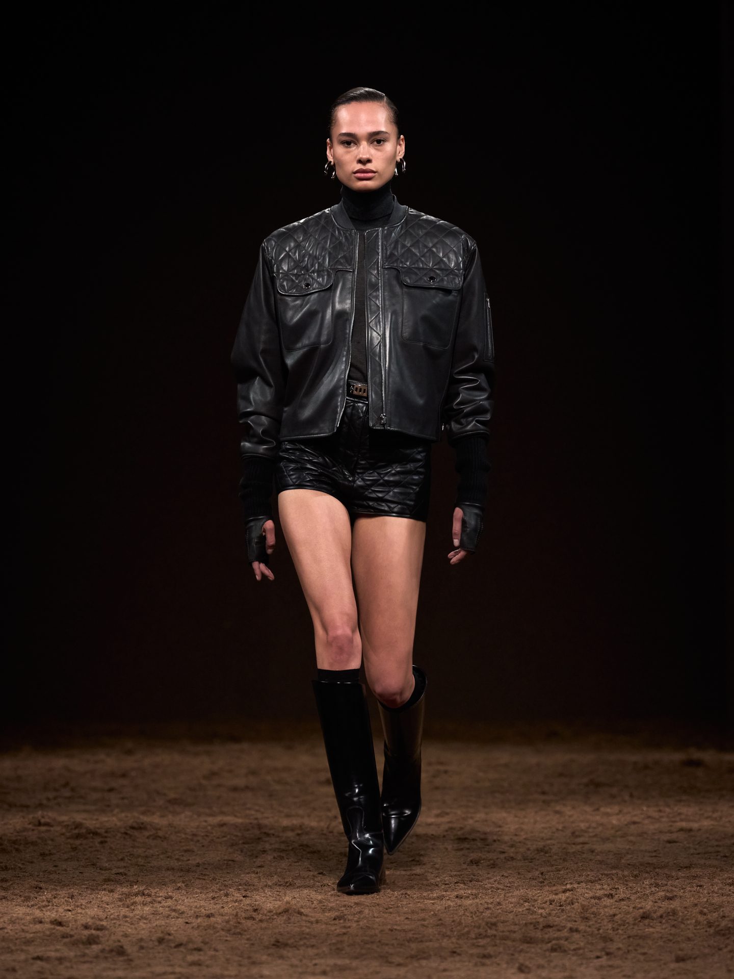 Gilet, giacche matelassè e trench in pelle, tubini in maglia o velluto e look monocolore sfilano alla Paris Fashion Week sulla passerella Autunno/Inverno 2025-2026 di Hermes