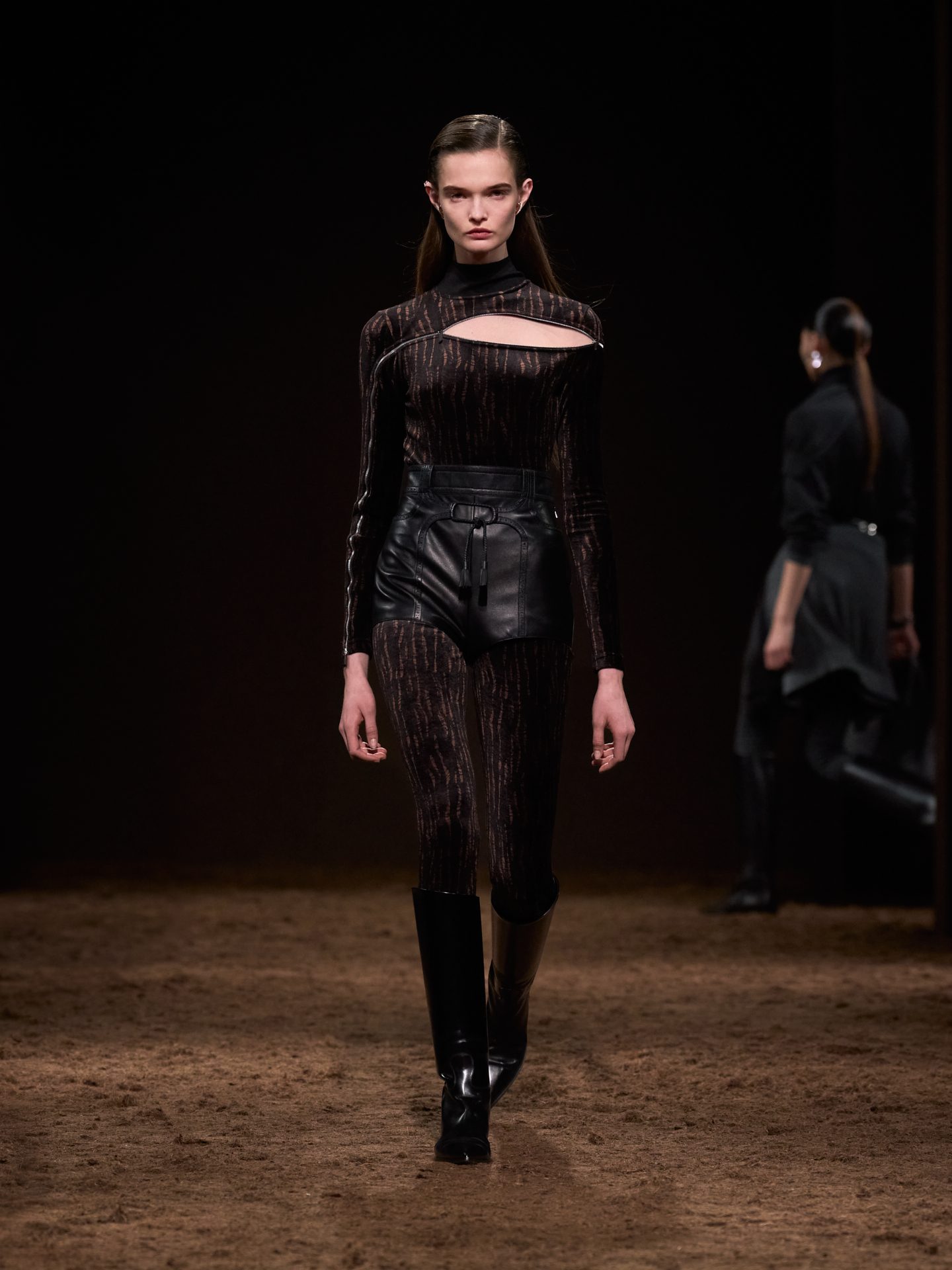 Gilet, giacche matelassè e trench in pelle, tubini in maglia o velluto e look monocolore sfilano alla Paris Fashion Week sulla passerella Autunno/Inverno 2025-2026 di Hermes