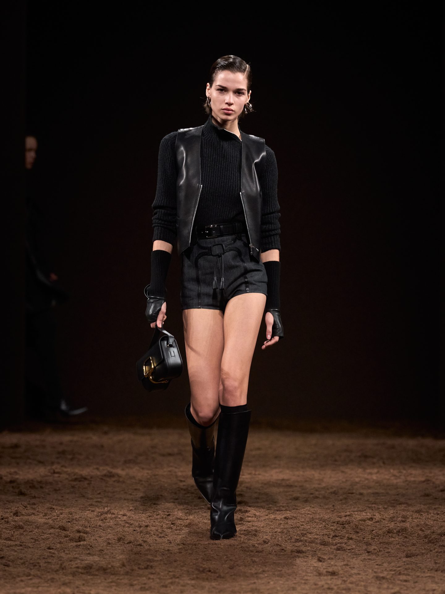 Gilet, giacche matelassè e trench in pelle, tubini in maglia o velluto e look monocolore sfilano alla Paris Fashion Week sulla passerella Autunno/Inverno 2025-2026 di Hermes