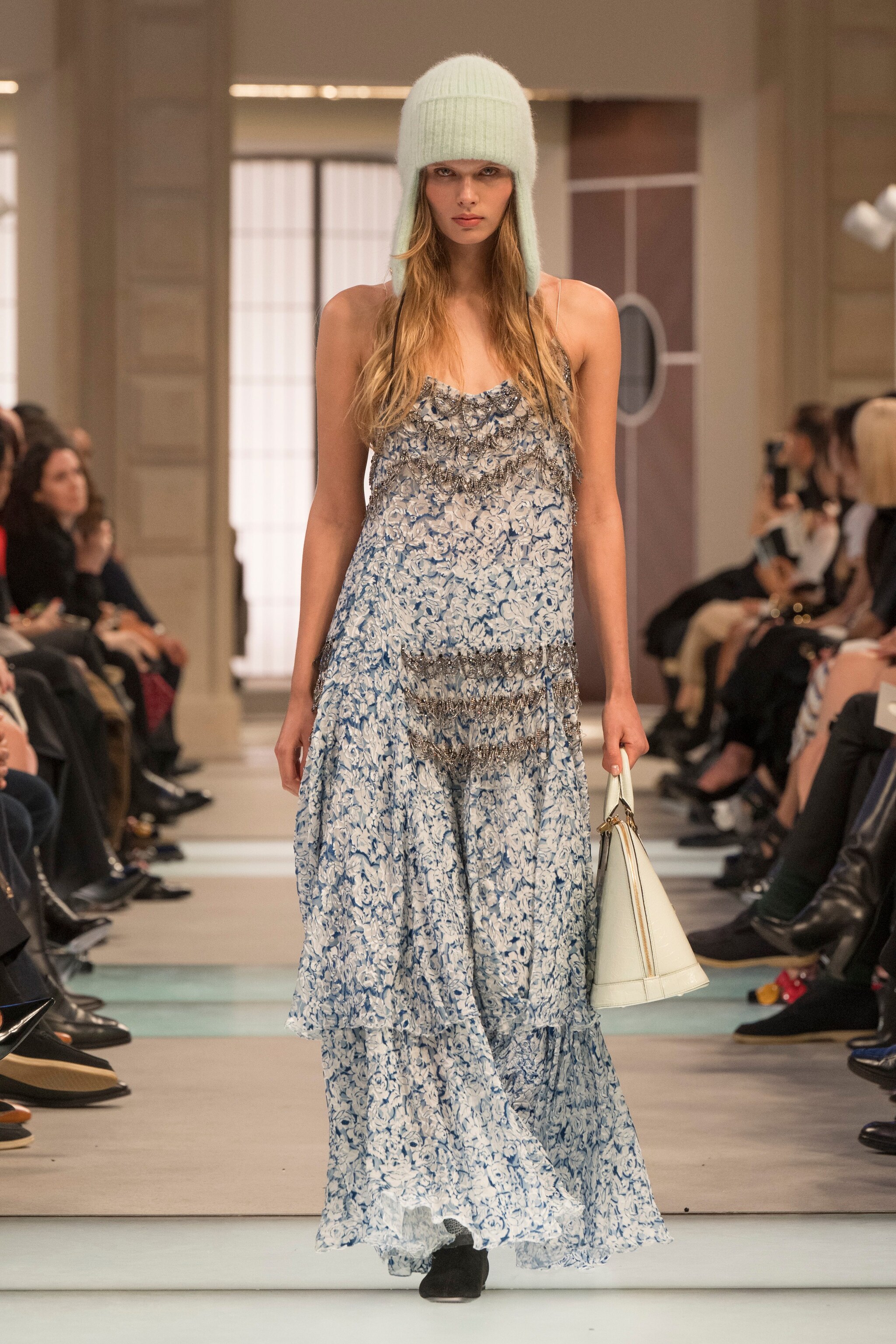 Trench, jumpsuit e parka in tessuti tecnici, capi in lana dalla stampa check, gonne ricche di ruche in tulle e abiti floreali sfilano alla Paris Fashion Week sulla passerella Autunno/Inverno 2025-2026 di Louis Vuitton