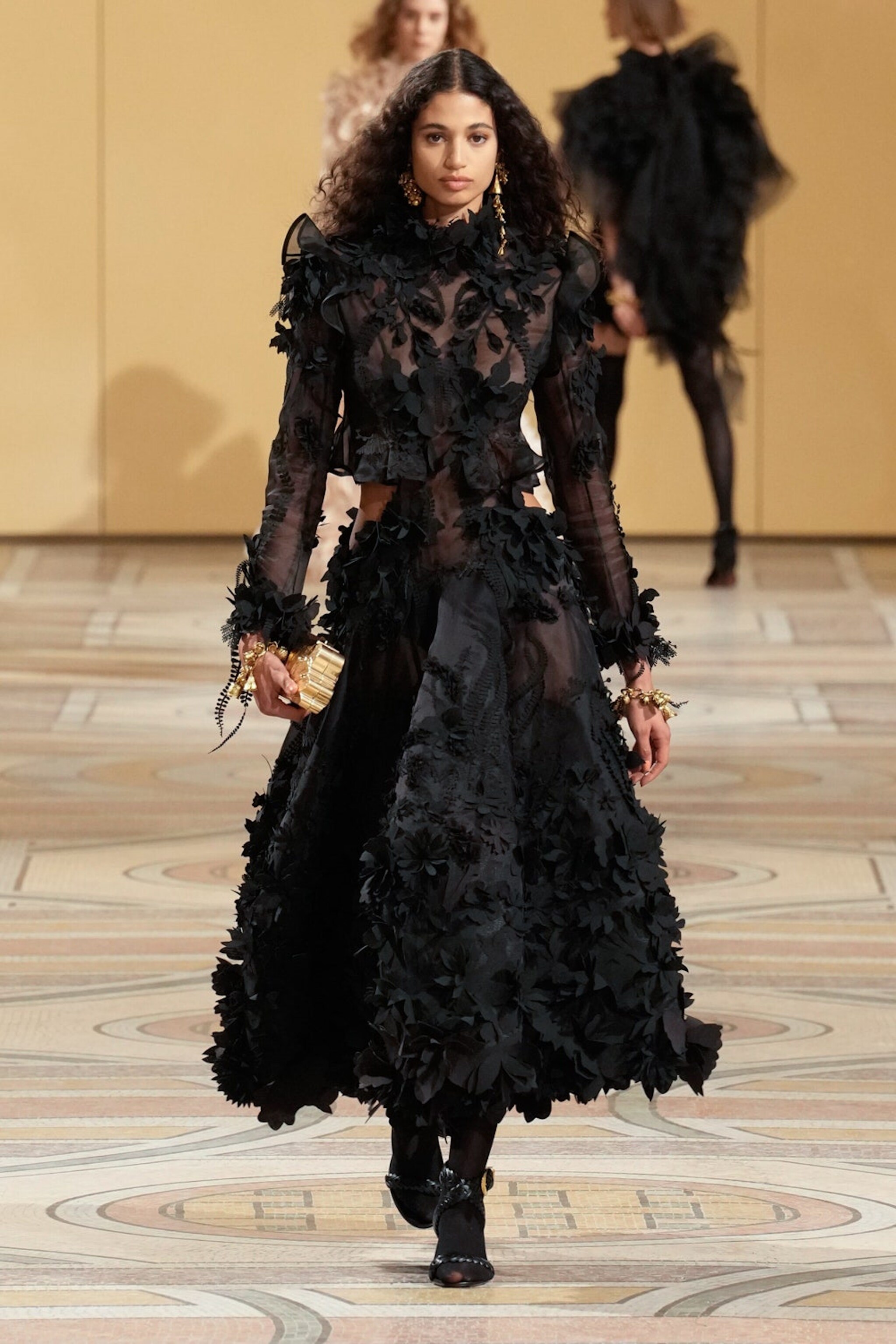 Abiti in pizzo e seta, suits in gessato color panna, ruche e sontuosi drappeggi sfilano alla Paris Fashion Week sulla passerella Autunno/Inverno 2025-2026 di Zimmermann