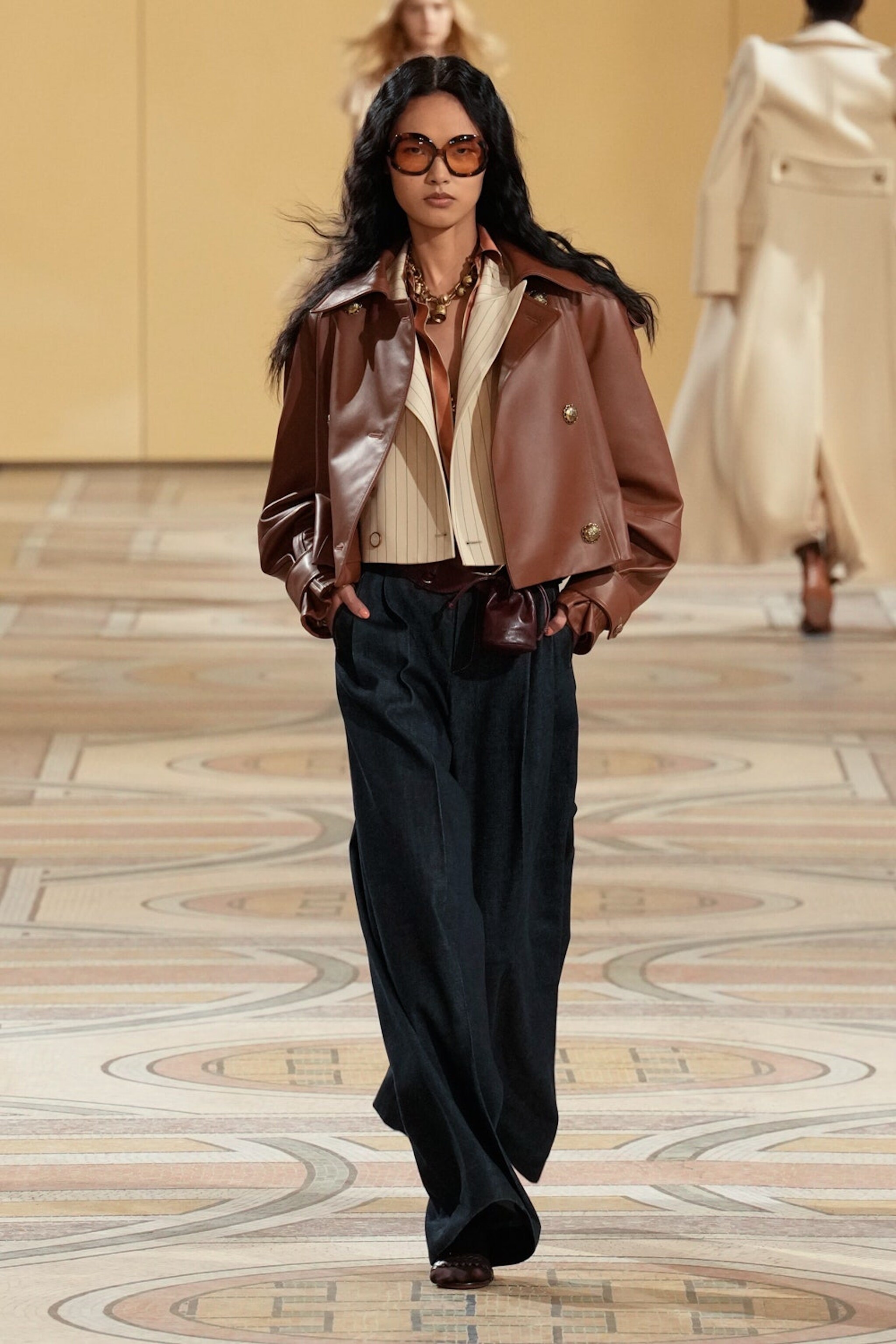Abiti in pizzo e seta, suits in gessato color panna, ruche e sontuosi drappeggi sfilano alla Paris Fashion Week sulla passerella Autunno/Inverno 2025-2026 di Zimmermann