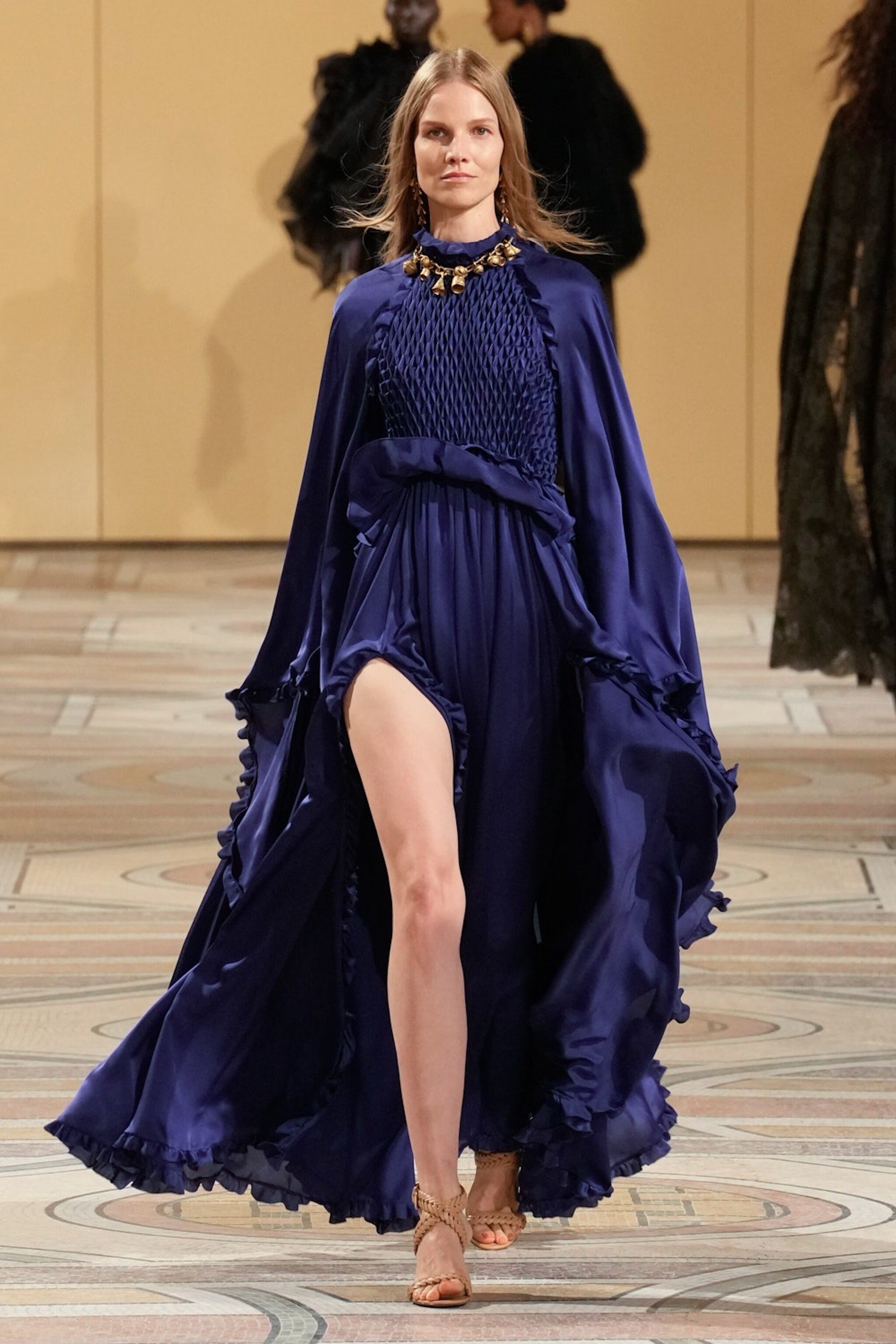 Abiti in pizzo e seta, suits in gessato color panna, ruche e sontuosi drappeggi sfilano alla Paris Fashion Week sulla passerella Autunno/Inverno 2025-2026 di Zimmermann