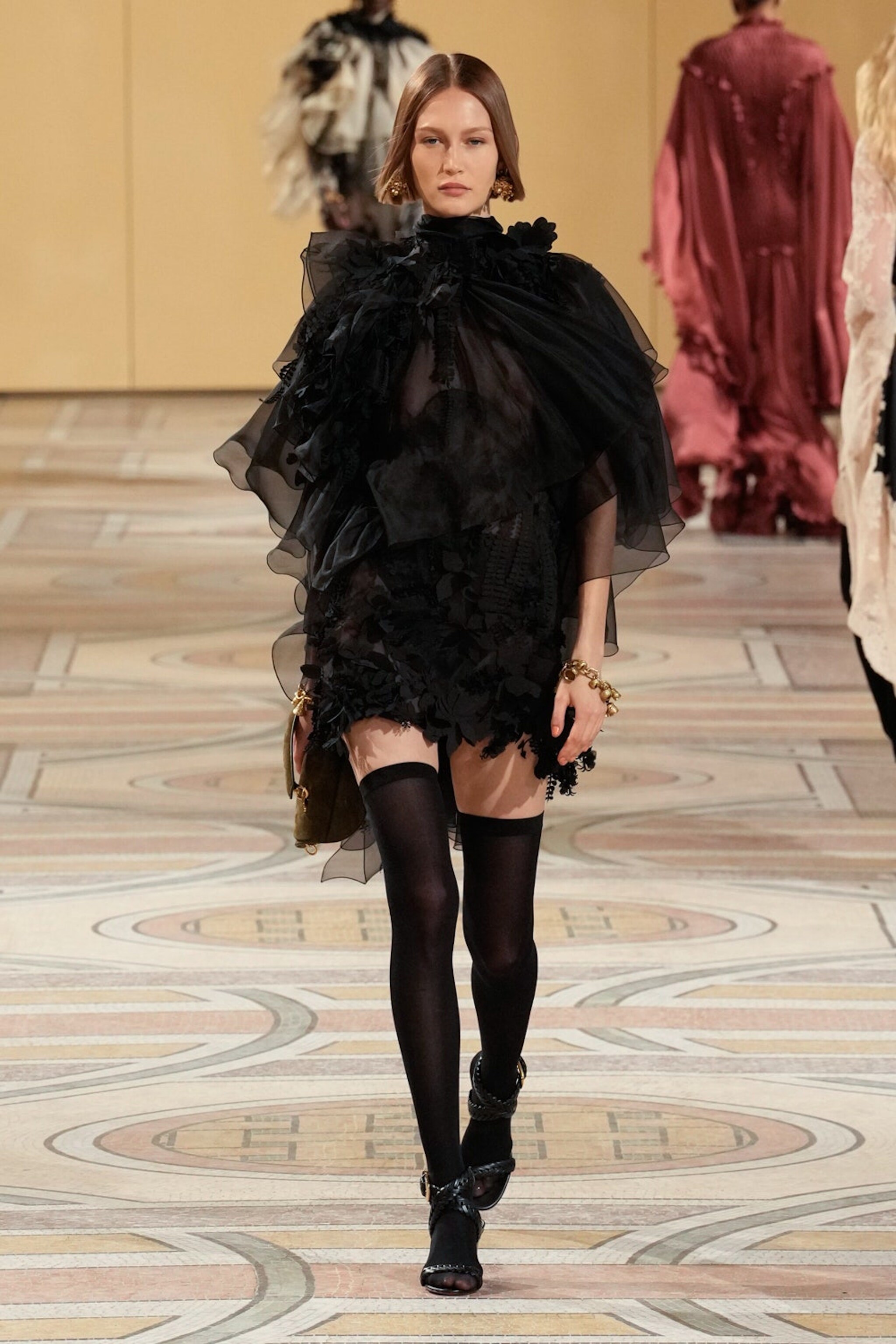 Abiti in pizzo e seta, suits in gessato color panna, ruche e sontuosi drappeggi sfilano alla Paris Fashion Week sulla passerella Autunno/Inverno 2025-2026 di Zimmermann