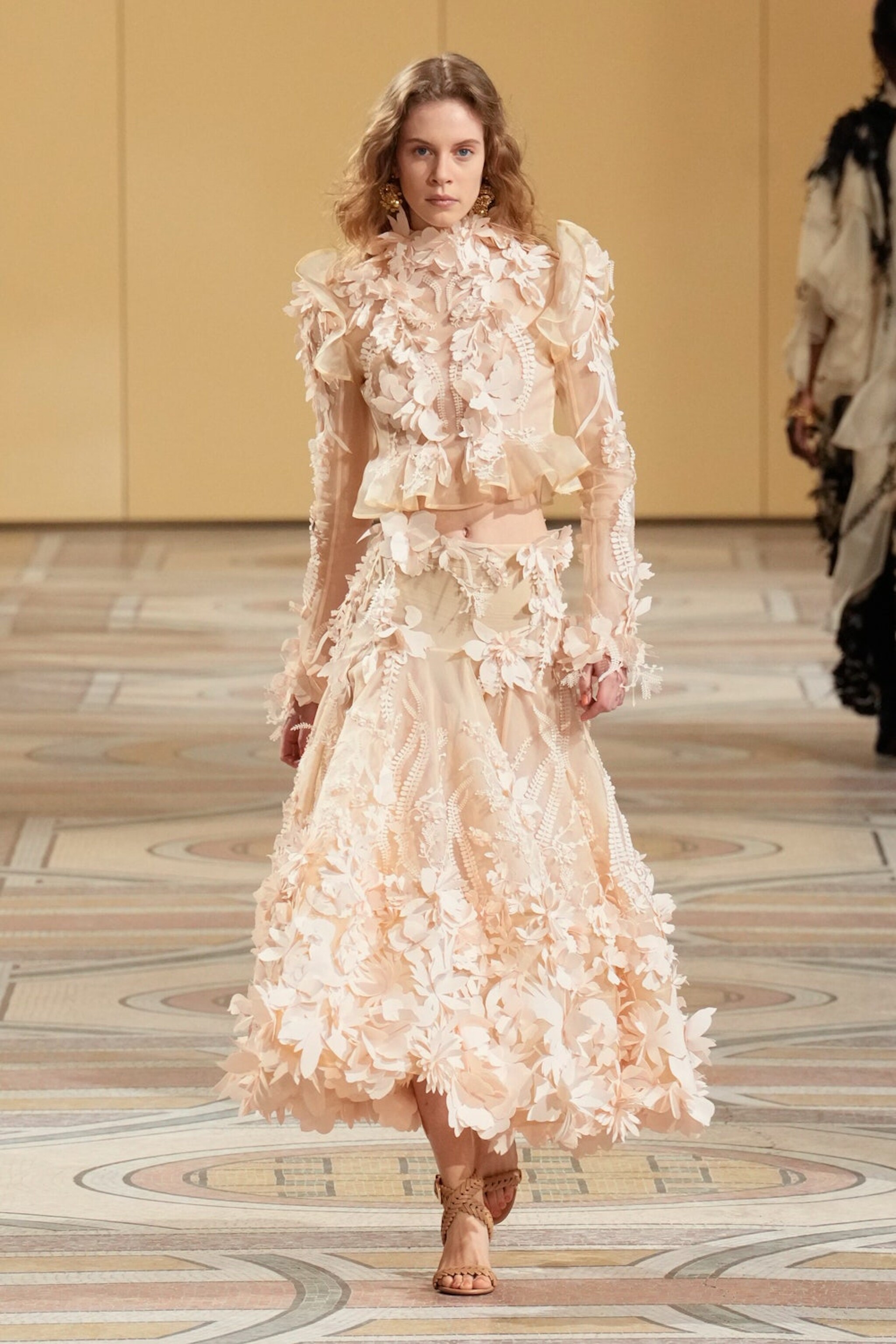 Abiti in pizzo e seta, suits in gessato color panna, ruche e sontuosi drappeggi sfilano alla Paris Fashion Week sulla passerella Autunno/Inverno 2025-2026 di Zimmermann