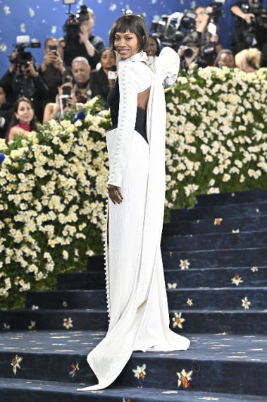 • Zoe Saldana in Thom Browne con gioielli Cartier